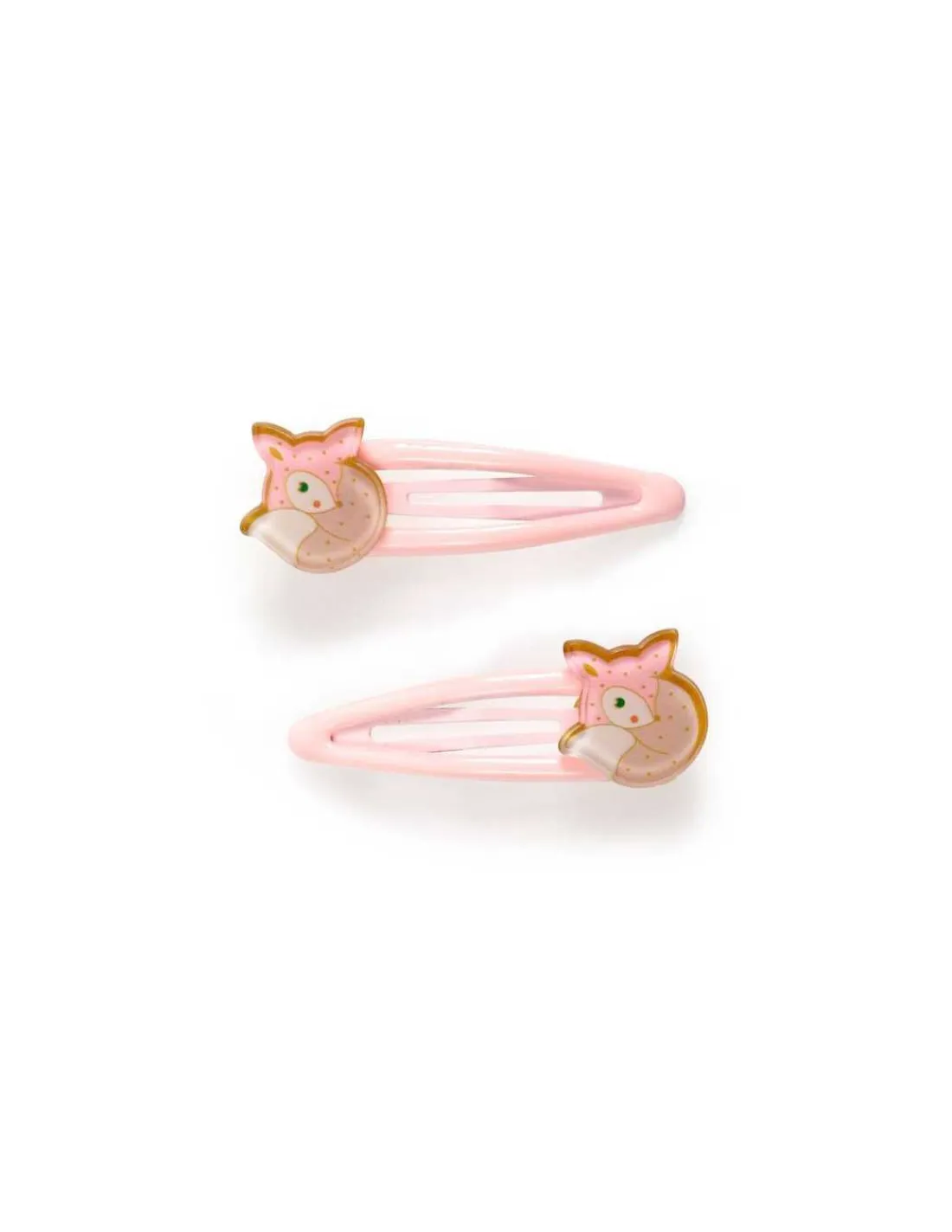 Le set comprend 2 barrettes-clip en métal avec 2 éléments renards en acrylique.