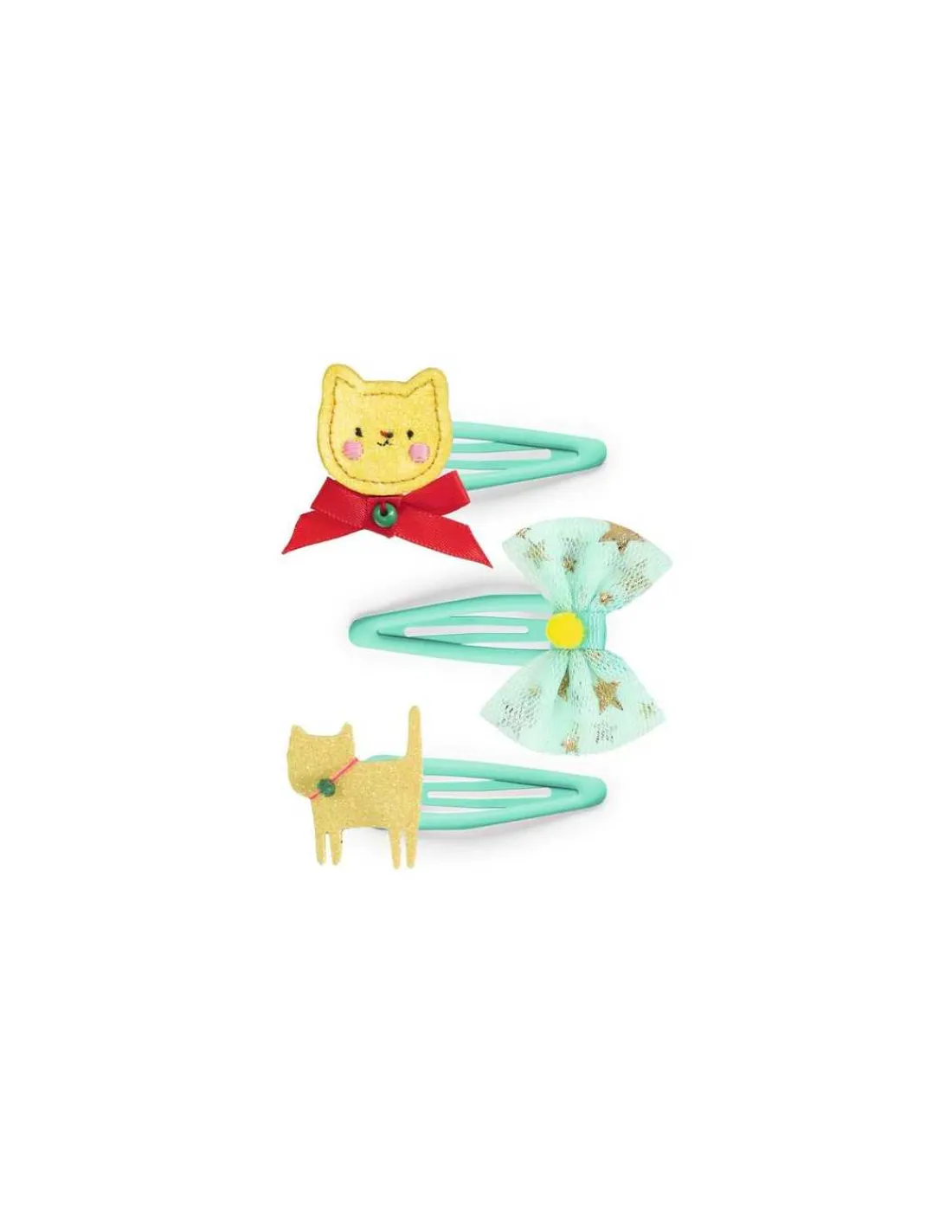 Apportez une touche colorée à votre coiffure avec ce set composé de 3 barrettes en métal ornées d’une tête de chat en simili-cuir, d’un nœud en tulle et d’un chat en simili-cuir.