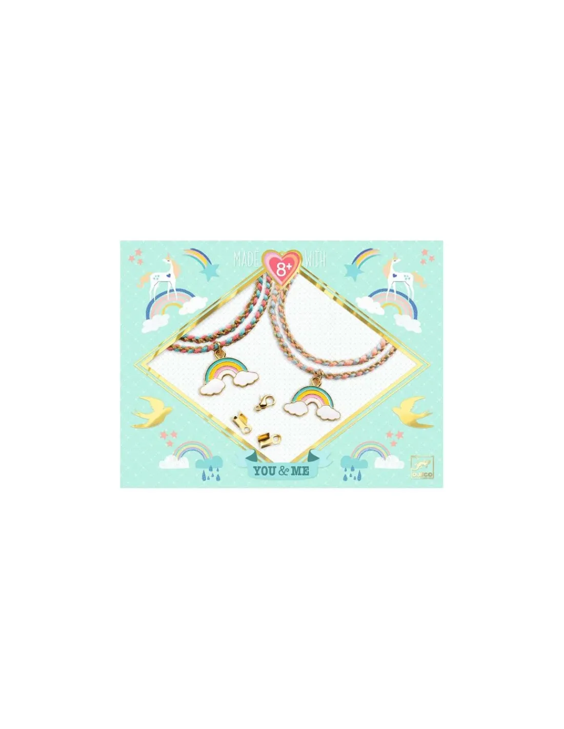 Découvrez les bijoux duo bracelets Kumihimo Arc-en-ciel de la collection You & Me de Djeco, un coffret créatif permettant aux enfants dès 8 ans de tresser 2 jolis bracelets « arc-en-ciel » selon l’art traditionnel japonais du Kumihimo.