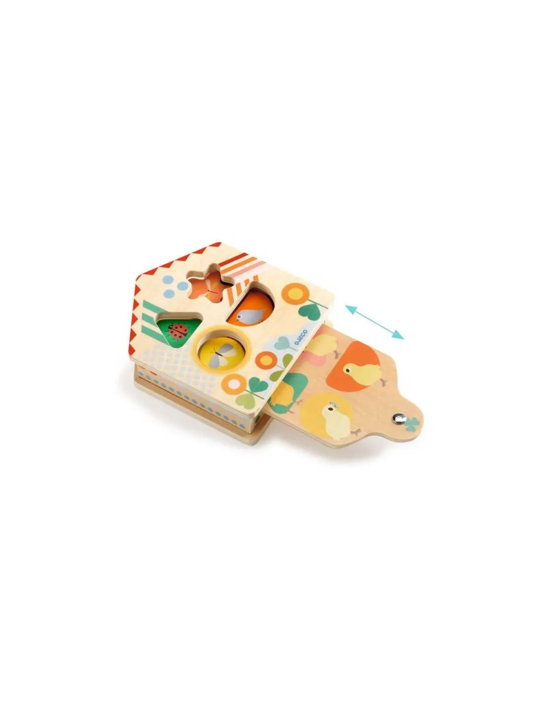 Découvrez la boite à formes Cachaboom de Djeco, un jouet d’éveil en bois en forme de maison, dans laquelle les enfants, dès 18 mois, vont s’amuser à encastrer les 4 pièces de formes et de couleurs différentes.