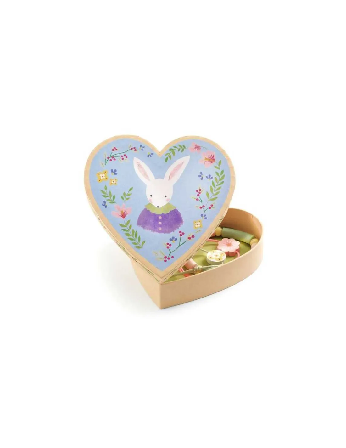 Un coffret sur le thème du jardin qui comprend 2 bracelets « Lien » avec perle plate imprimée et 1 bracelet perles « nouilles » en bois coloré. Chaque bijou est pensé pour les petites mains et facile à enfiler, permettant aux enfants de s’amuser en toute autonomie. Ils pourront les conserver précieusement dans la magnifique boîte en forme de cœur, délicatement illustrée d’un lapin tendre et malicieux.