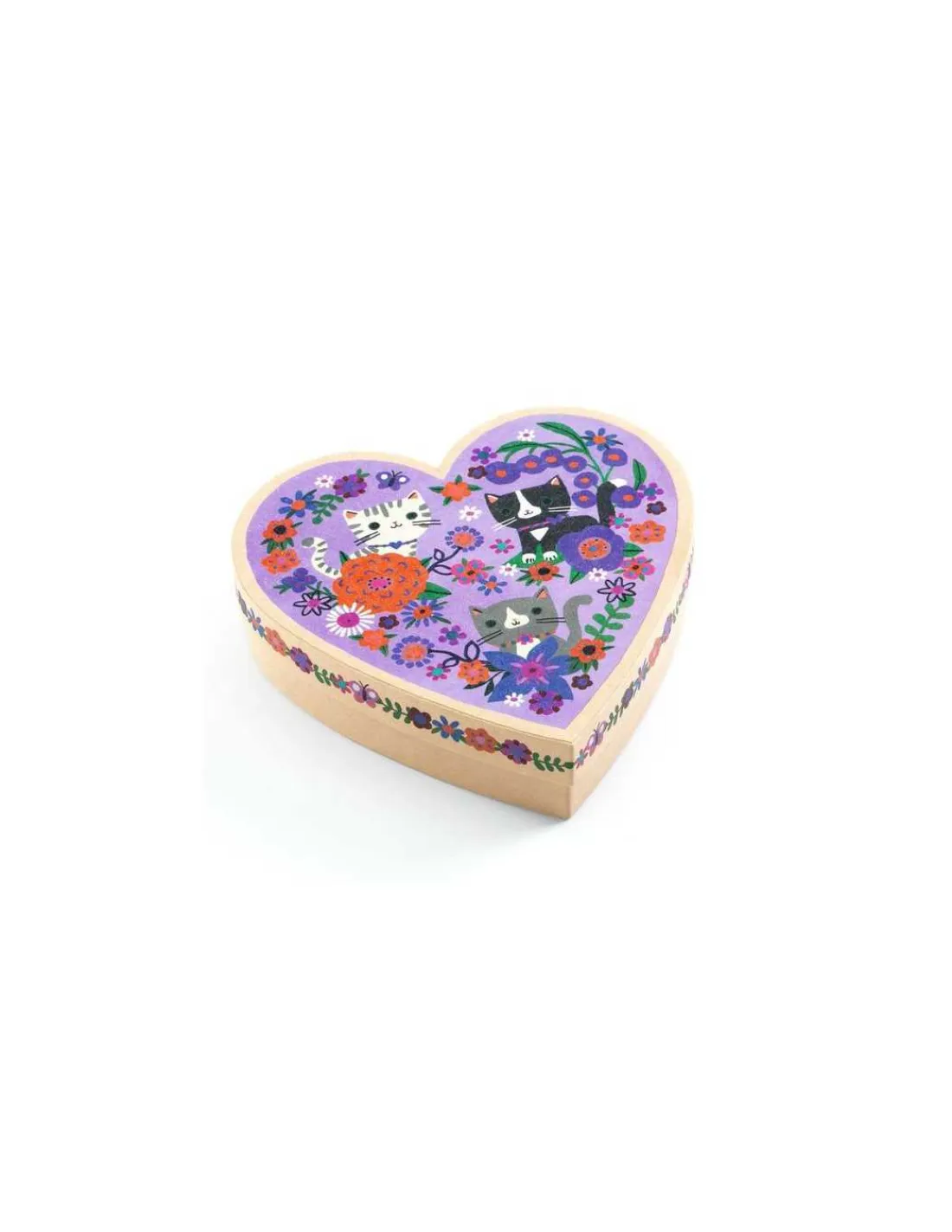 Un coffret qui comprend 2 bracelets « Lien » avec perle plate imprimée et 1 bracelet perles « nouilles » en bois coloré. Chaque bijou est pensé pour les petites mains et facile à enfiler, permettant aux enfants de s’amuser en toute autonomie. Ils pourront les conserver précieusement dans la magnifique boîte en forme de cœur, délicatement illustrée d’adorables chats.
