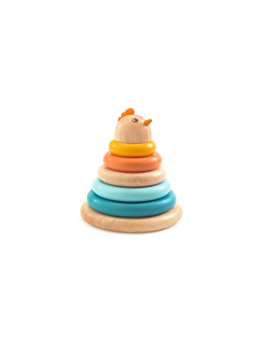 Découvrez Cachempil maman poule de Djeco, un jouet à empiler en bois massif composé d’un socle, de 5 anneaux de taille croissante et de la tête de la poule, un jouet d’éveil pour les enfants dès 1 an.