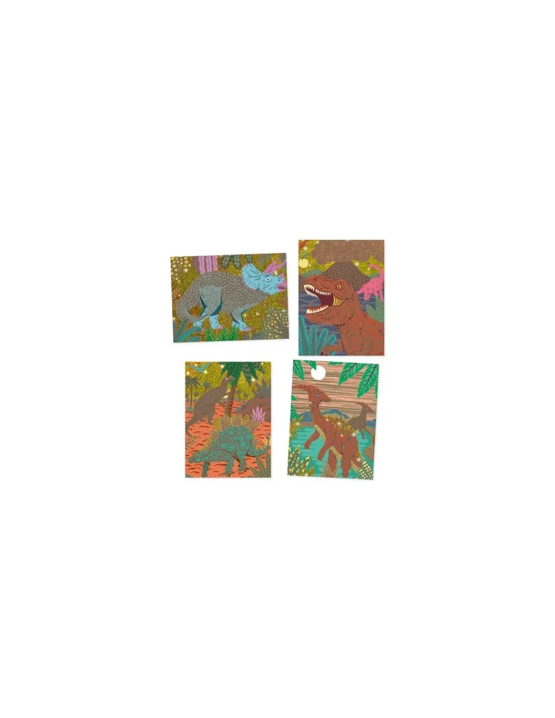 Découvrez les cartes à gratter dinosaures de Djeco, un loisir créatif ludique et original pour les garçons à partir de 7 ans, pour créer sur le thème du règne des dinosaures.
