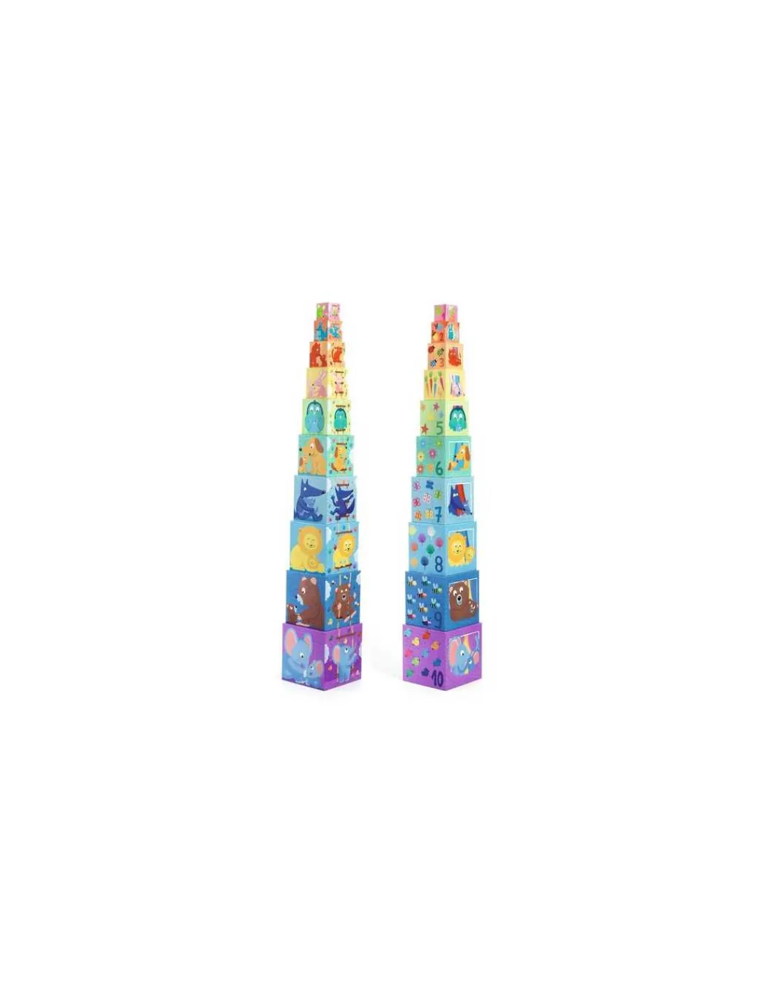 10 cubes pour une tour de 86 cm avec 5 faces à découvrir pour le plus grand plaisir de votre enfants.