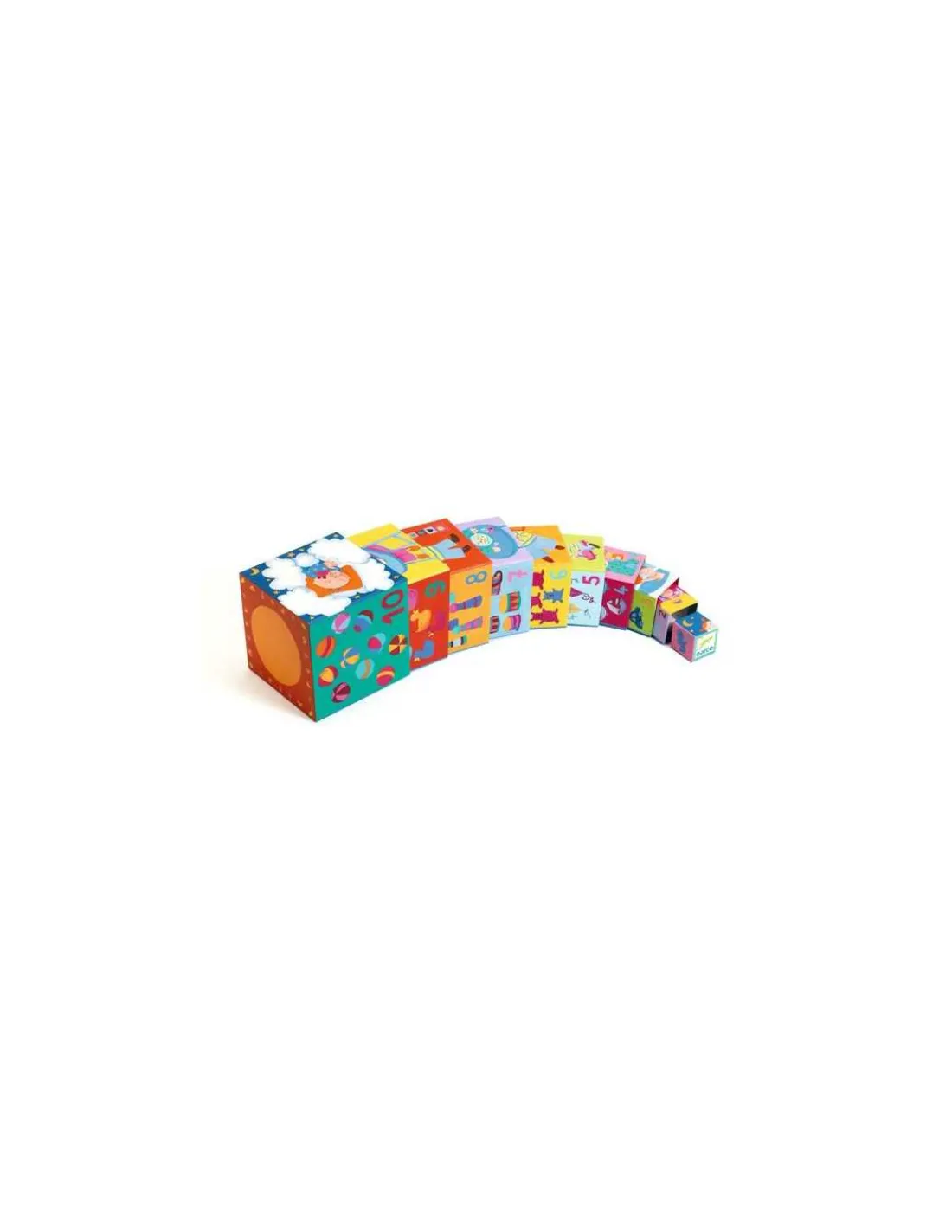 10 cubes gigognes à empiler ou à encastrer par ordre de grandeur avec de merveilleuses illustrations, des cubes qui lui feront découvrir les animaux sauvages, les chiffres et les scènes de sa vie quotidienne.