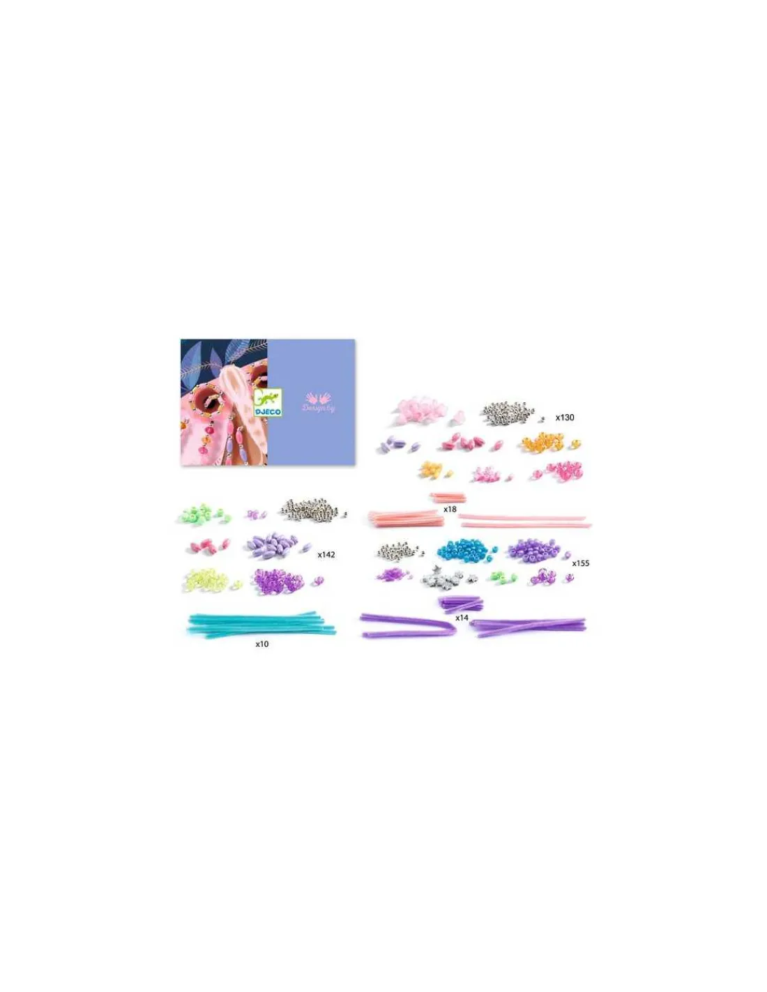 Ce coffret comprend 3 planches épaisses, illustrées et percées, 420 perles, 45 fils chenilles et 1 livret explicatif.