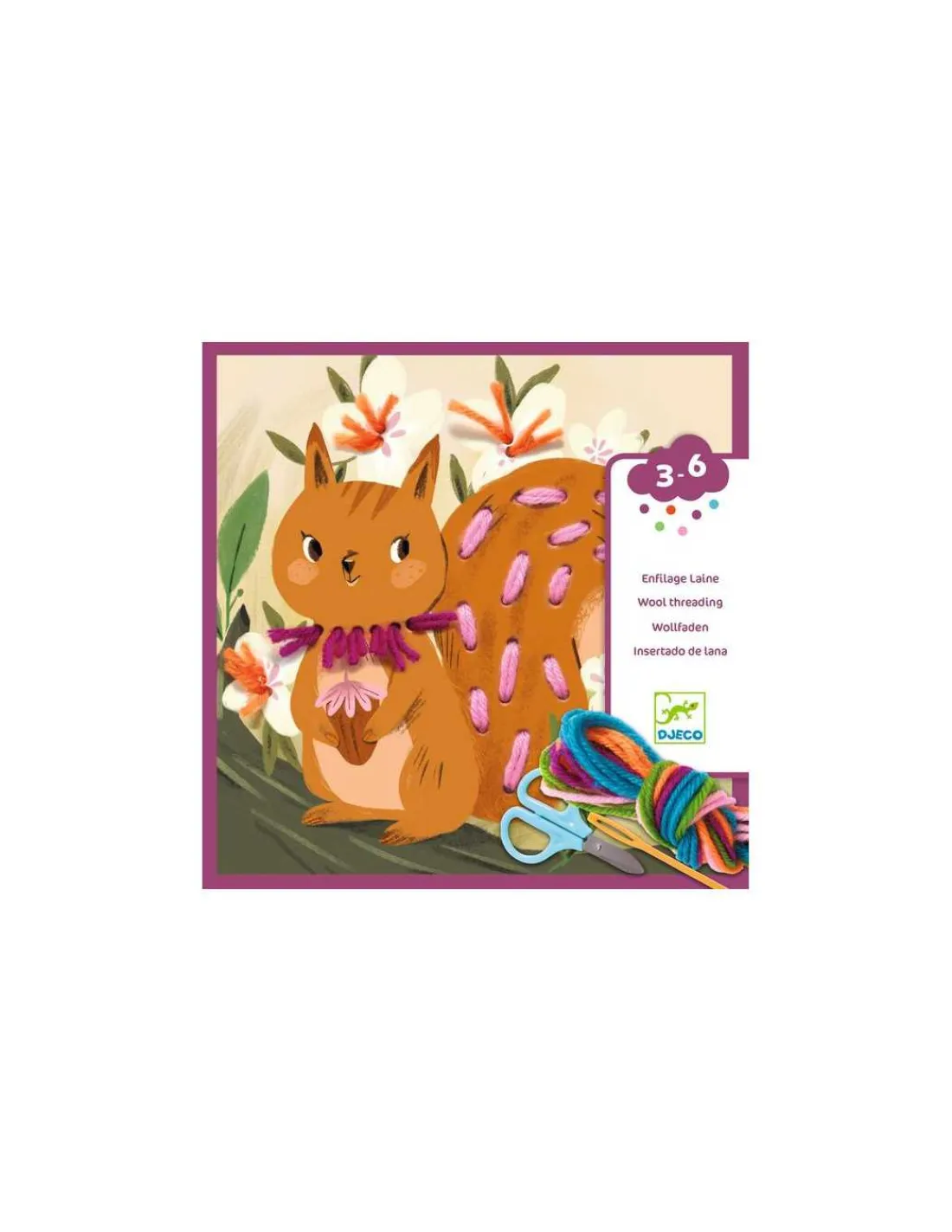 Découvrez le coffret Enfilage laine Petit pas avec du fil de Djeco, une activité créative et ludique, une première initiation à la broderie pour les enfants de 3 à 6 ans.