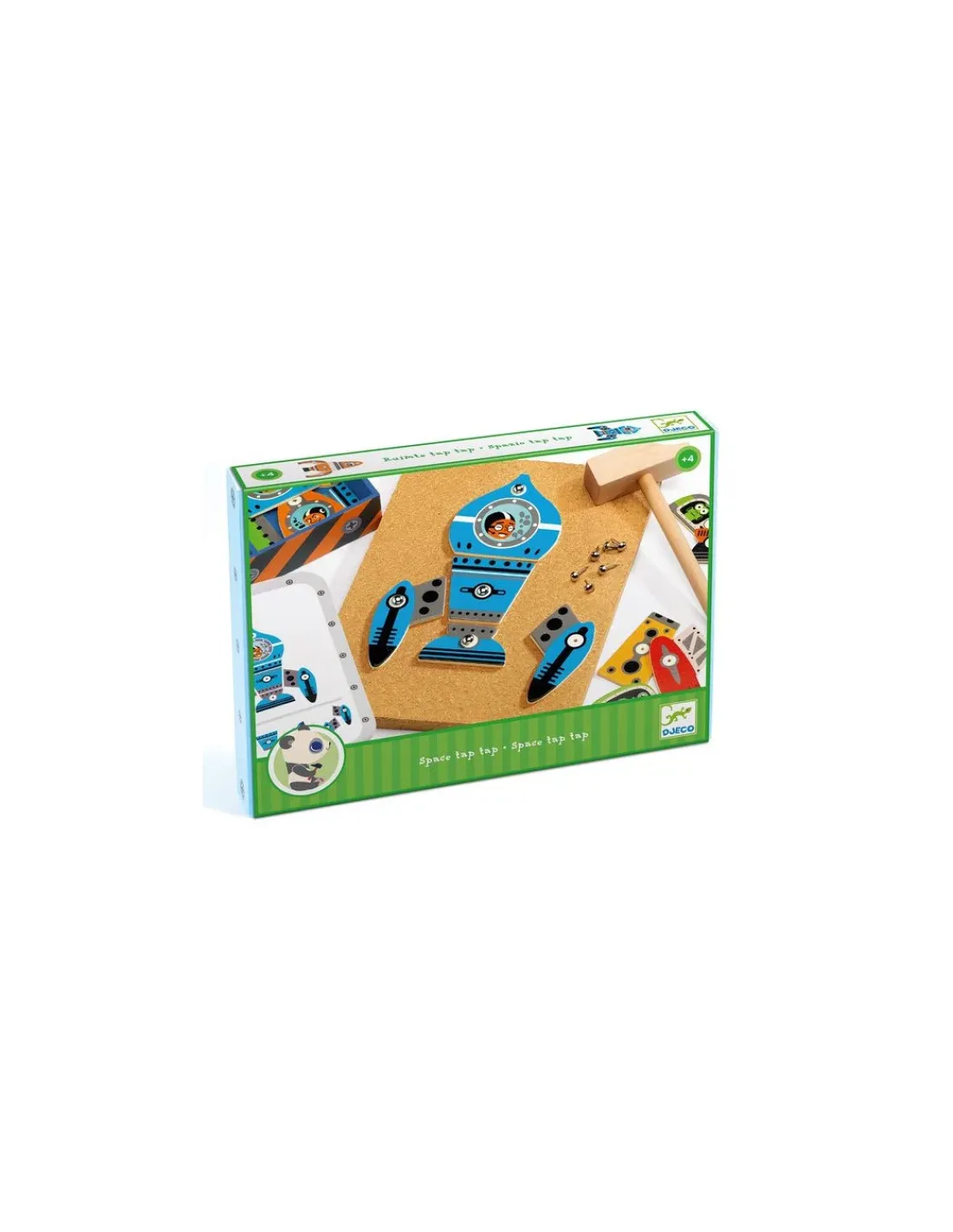 Découvrez Tap tap espace de Djeco, un jeu de construction pour créer toutes sortes de fusées et d’engins spatiaux à l’aide d’un marteau et de clous. Un classique des activités de maternelle revisité par Djeco, pour développer la dextérité des plus jeunes dès 4 ans.