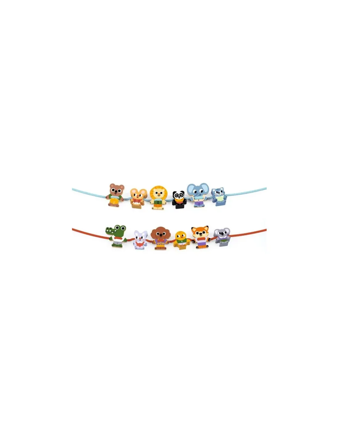 Vous allez aimer ces perles sur le thème des animaux avec un ours, un panda, un éléphant, un crocodile, un renard, un koala… Votre enfant va s’amuser à lacer les planches et à enfiler les perles joliment illustrées sur les deux cordons en laissant libre cours à son imagination.