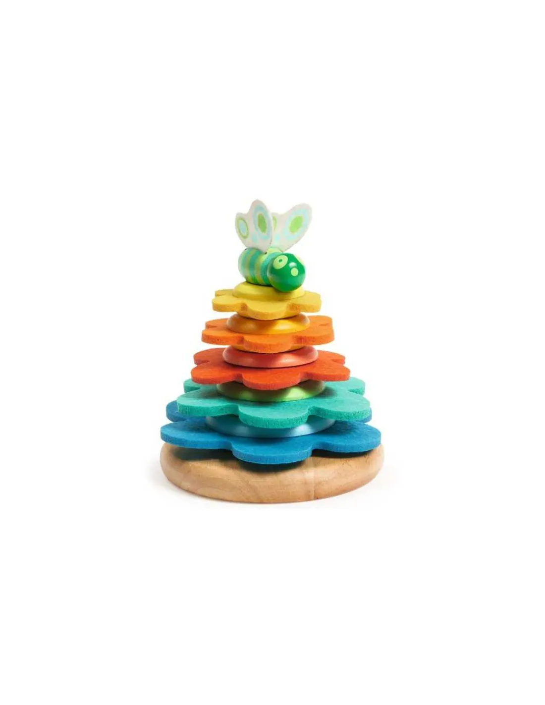 Découvrez Butterflower de Djeco, un jouet à empiler en bois et en feutrine comprenant un socle, 5 anneaux de taille croissante et un adorable papillon. Ce jouet d’éveil est parfait pour les enfants, filles ou garçons, dès 18 mois.
