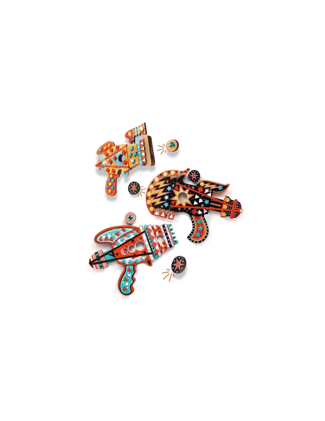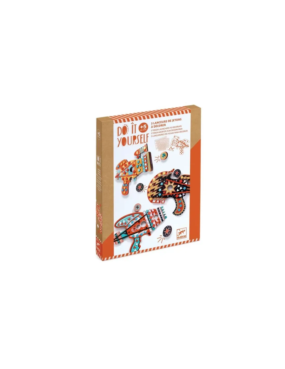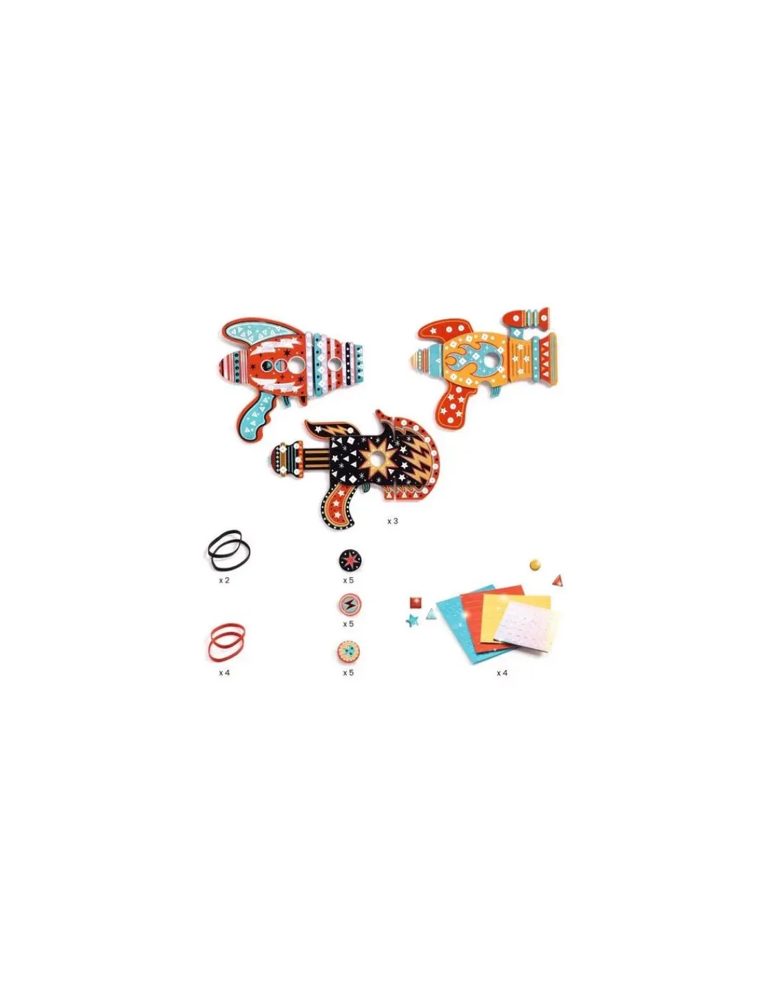 Découvrez le coffret Lanceurs de jetons à décorer Kosmik de la collection Do It Yourself de Djeco, un coffret créatif pour les enfants à partir de 5 ans permettant de confectionner 3 lanceurs de jetons à l’aide de stickers mosaïques.