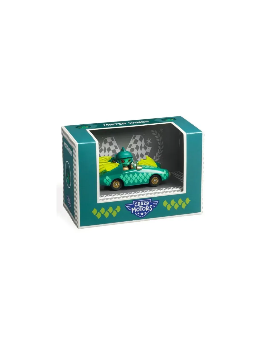 Découvrez Mister Wings de la collection Crazy Motors de Djeco, une voiture de course en métal avec son pilote de course. Un jouet pour les enfants de 3 à 9 ans.