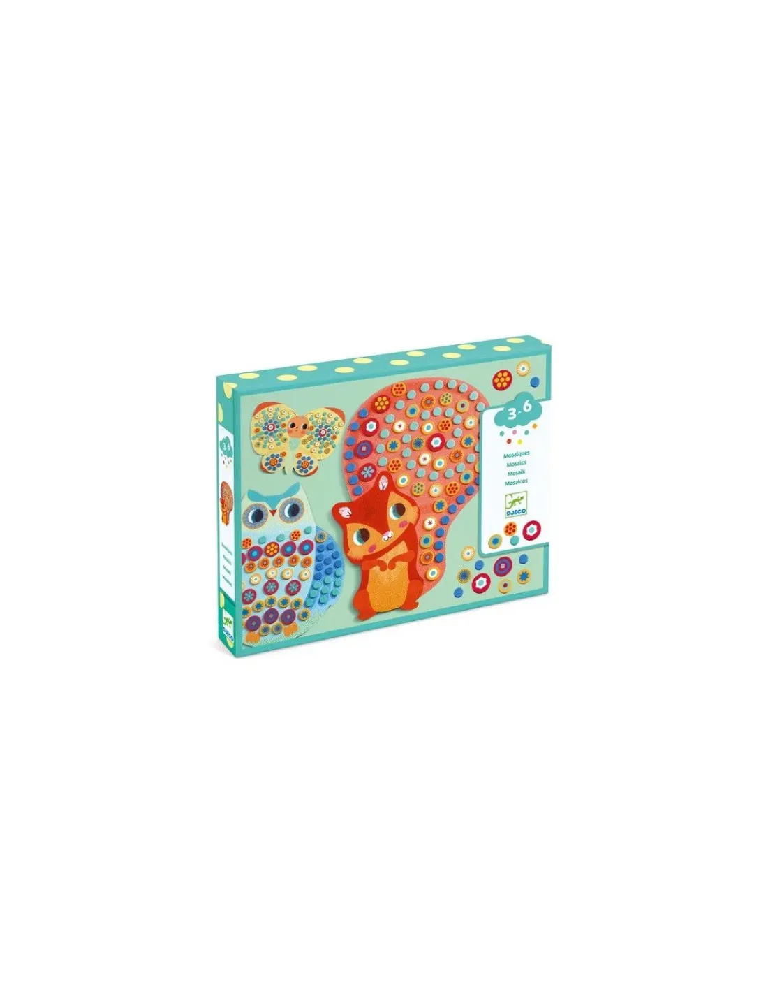 Découvrez la mosaïque Millefiori de Djeco, une activité de collage de mosaïque en mousse pour les enfants de 3 à 6 ans, 3 jolies silhouettes d’animaux à décorer avec patience.