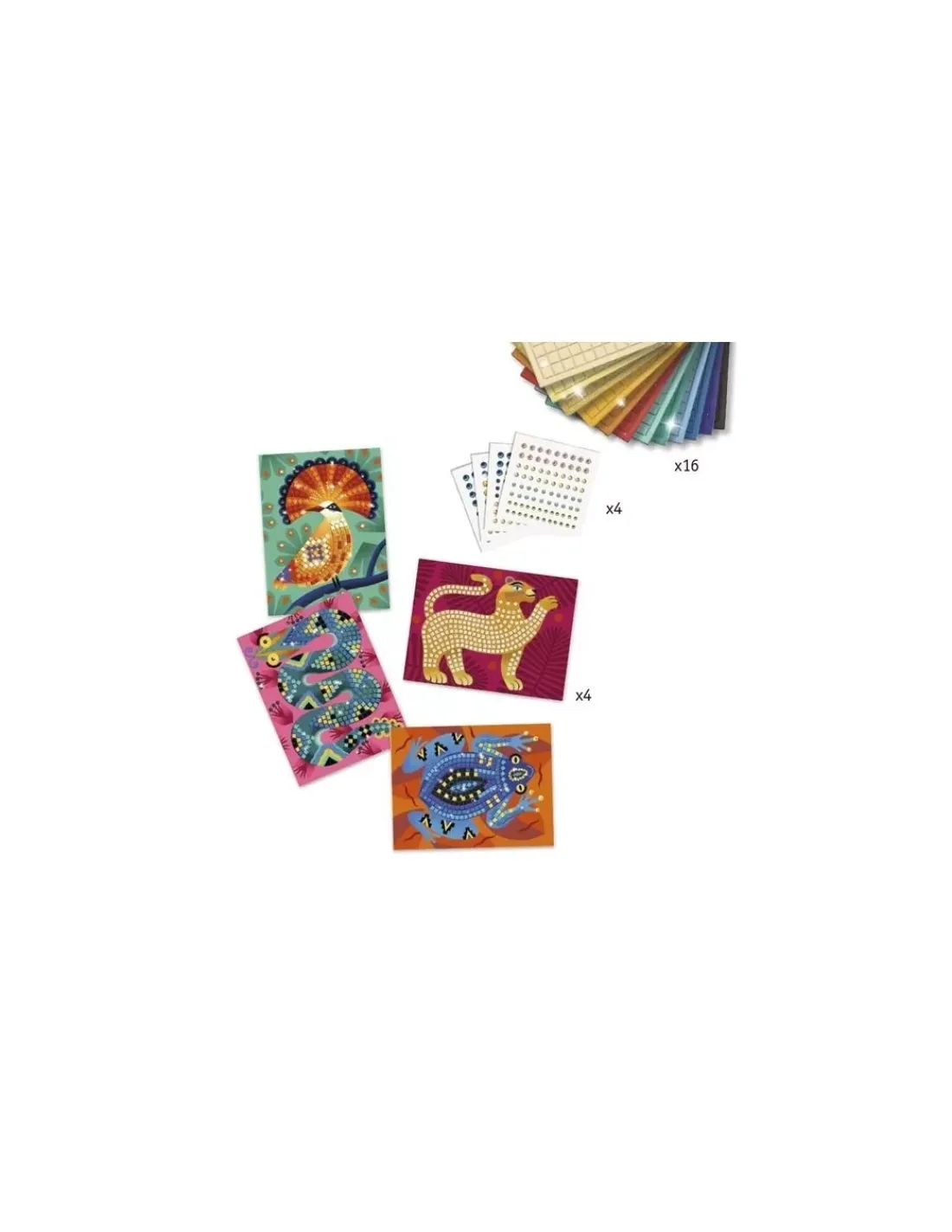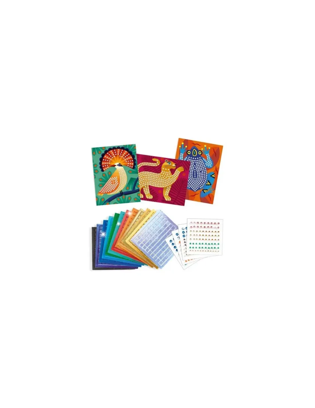 Découvrez le coffret de mosaïques au coeur de la jungle de Djeco, une activité créative pour les enfants de 7 à 13 ans qui réaliseront pas à pas 4 magnifiques tableaux de mosaiques métallisées sur le thème des animaux de la jungle, une activité ludique pour les enfants créatifs qui réaliseront un léopard, une grenouille, un serpent et un oiseau.
