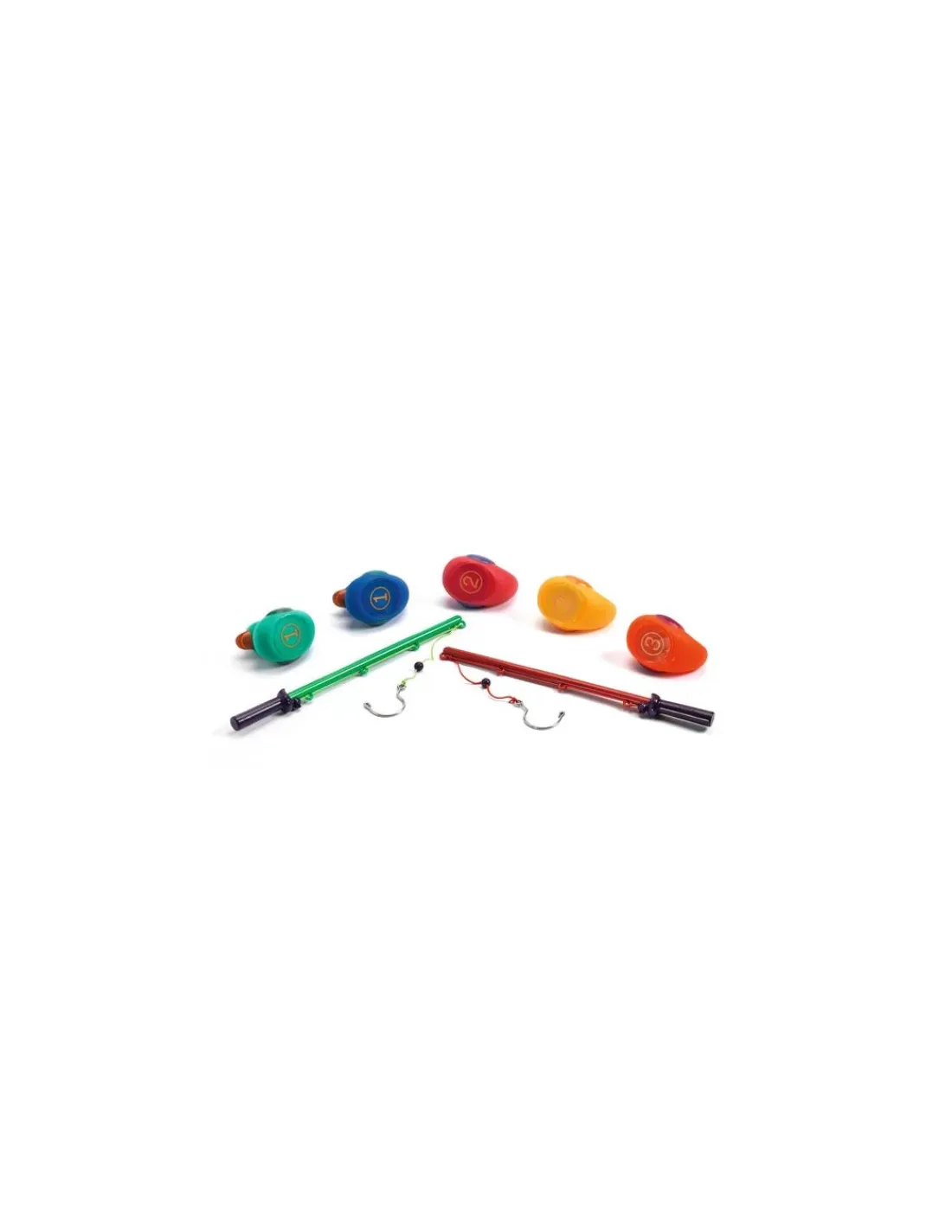Ce tube est composé de 2 cannes à pêches et de 5 canards rigolos aux couleurs de l’arc en ciel. Avec un peu d’habileté et beaucoup de fous rires, les pêcheurs en herbe vont bien s’amuser!
