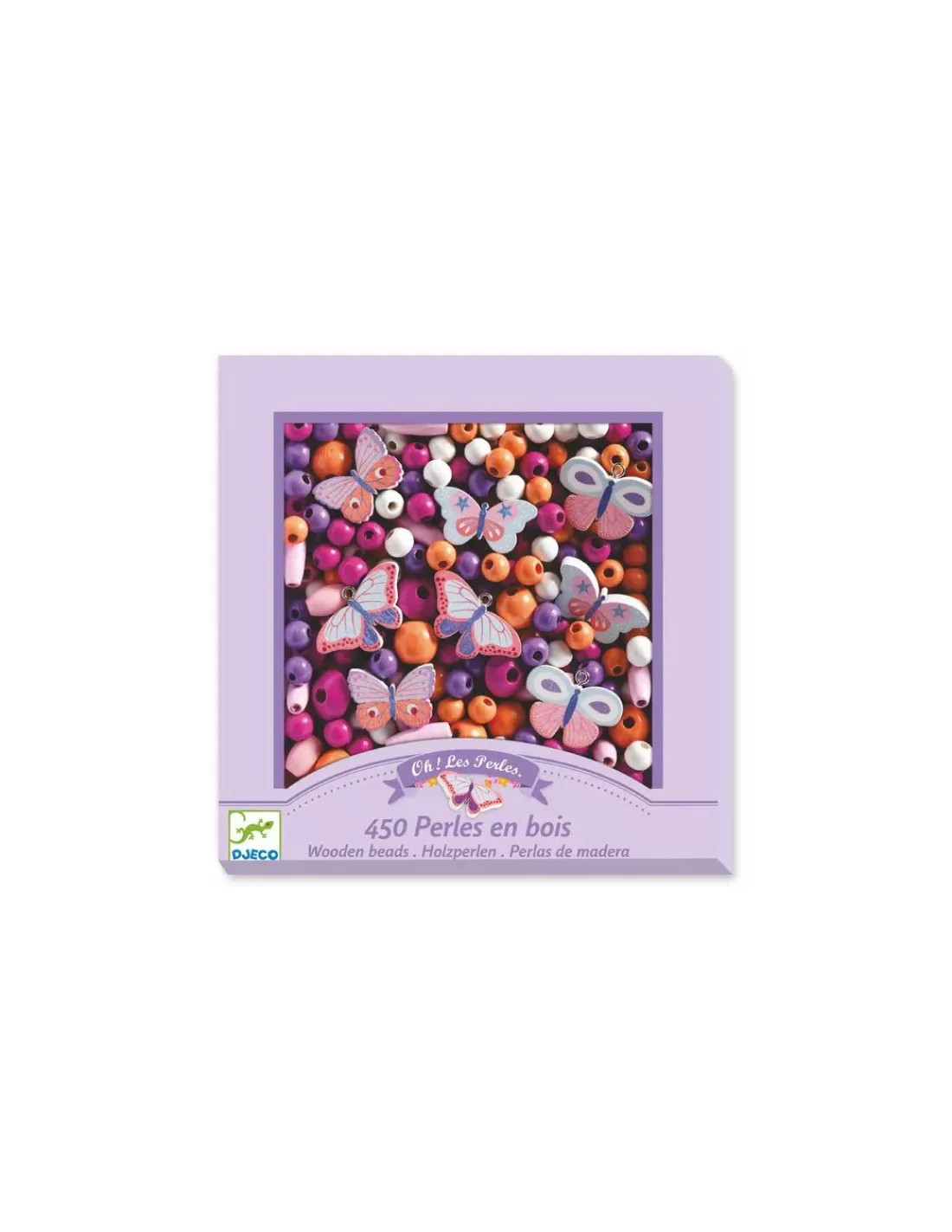 Découvrez les perles en bois papillons de Djeco, plus de 450 perles en bois pour réaliser des bijoux pour les enfants de 4 à 8 ans.