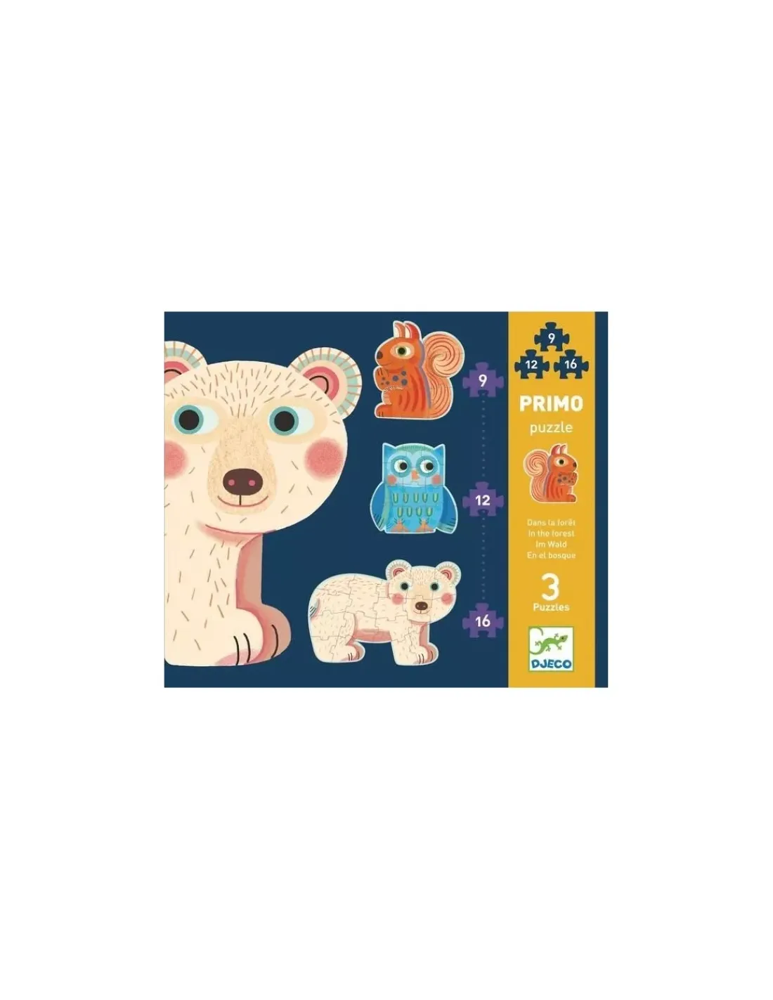Découvrez le primo puzzle Dans la forêt de Djeco, un coffret qui comprend 3 puzzles évolutifs et silhouettés de difficulté croissante pour les enfants à partir de 3 ans.