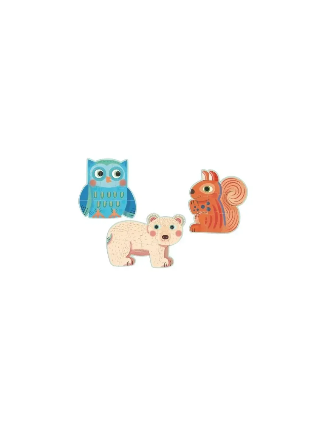 Ecureuil, hibou et ours, 3 puzzles de 9, 12 et 16 pièces dès 3 ans