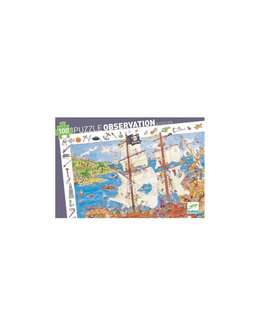 Un bel univers de pirate à découvrir dans ce puzzle d’observation pirates de 100 pièces de Djeco, un puzzle riche en détails et en surprises parfait pour les enfants dès 5 ans.
