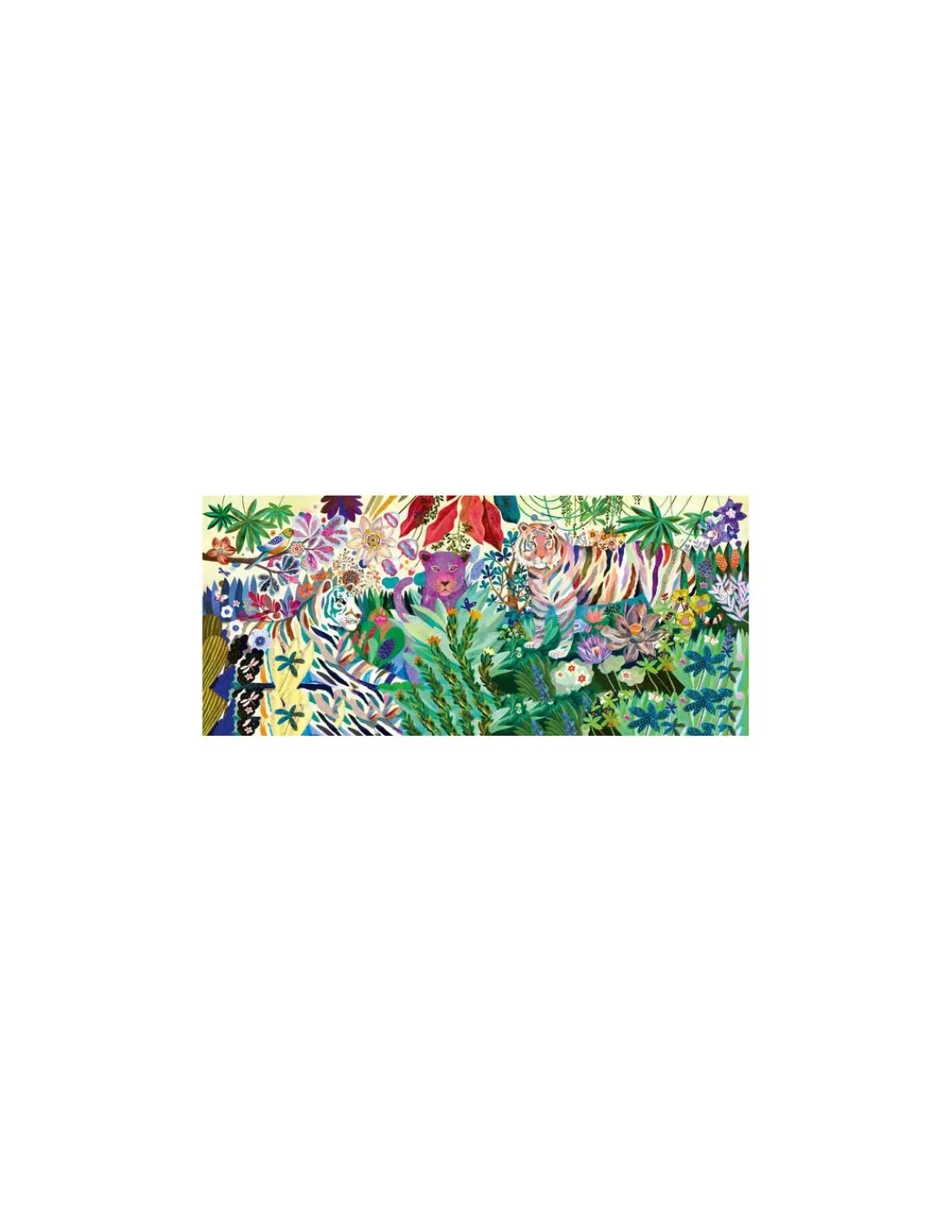 Patience et concentration sont au programme pour ce puzzle représentant des tigres arc-en-ciel dans une jungle colorée.