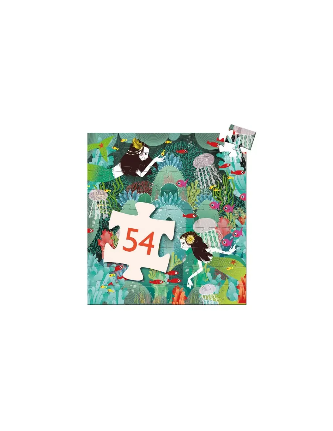 Découvrez le puzzle Paradis aquatique de Djeco, un puzzle de 54 pièces pour les enfants dès 5 ans, qui vous plongera parmi les sirènes et les poissons.