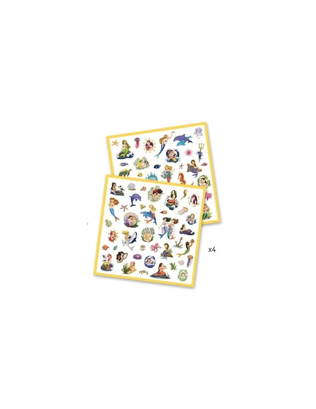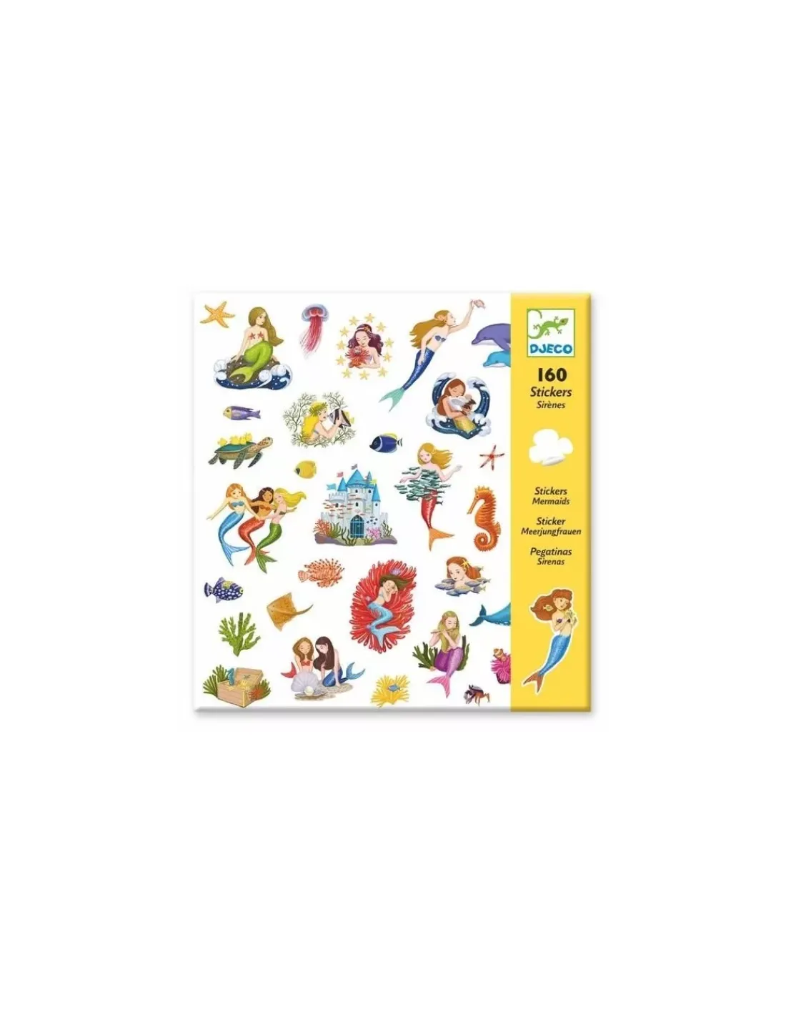 Découvrez les stickers sirènes de Djeco, une pochette de 160 stickers représentant de magnifiques sirènes. 4 planches de sitkers avec des coquillages, des coraux, des sirènes…