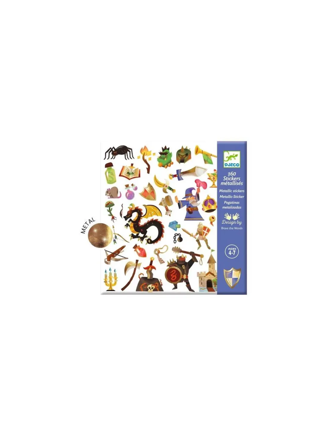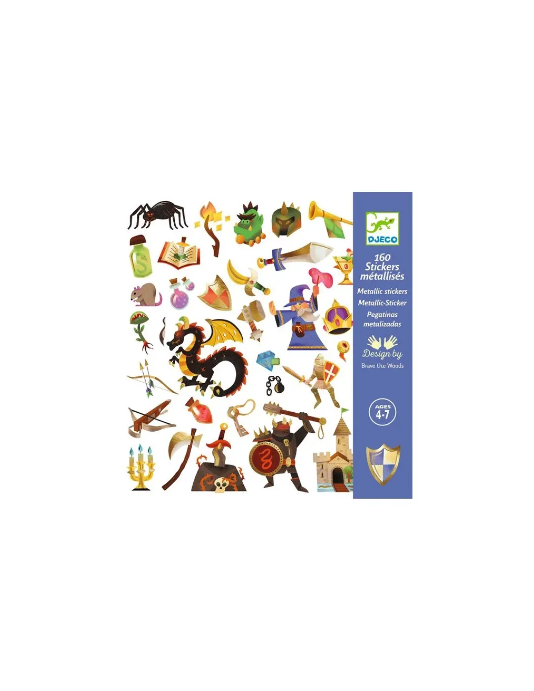 Découvrez les stickers Médiéval fantastique de Djeco, une pochette comprenant 4 planches avec 160 stickers métallisés sur le thème médiéval fantastique, pour les enfants de 4 à 7 ans.