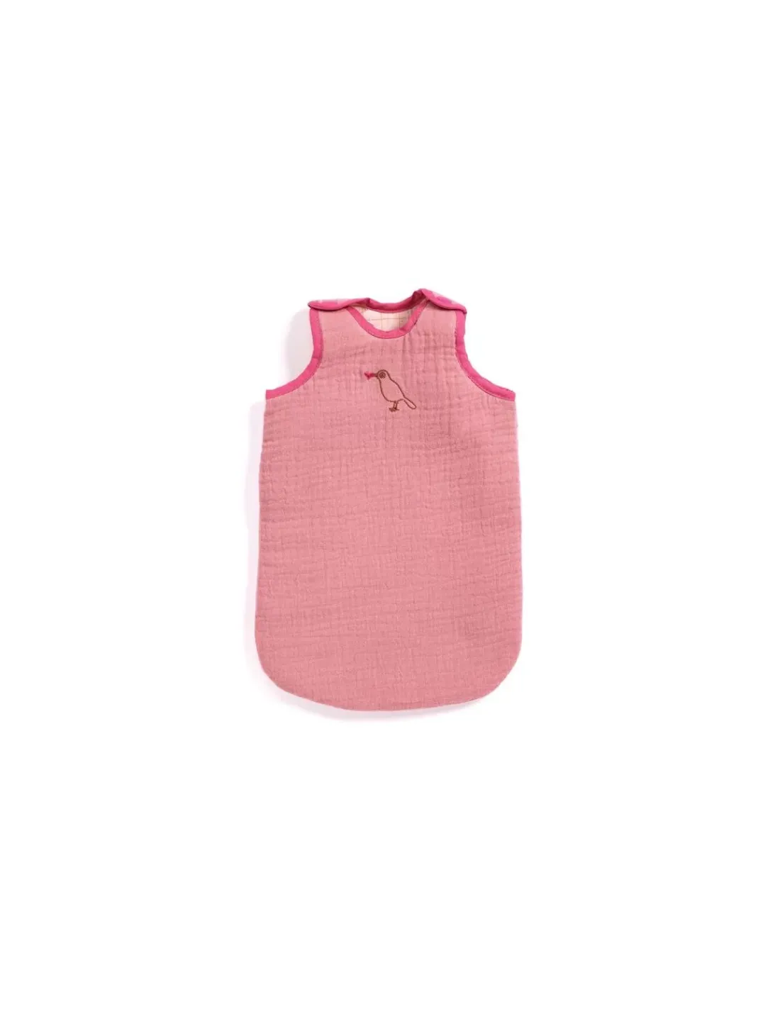 Une jolie turbulette rose avec un oiseau brodé pour que bébé passe une bonne nuit et ne se découvre pas. Avec ses scratchs aux épaules, il est très facile d’y glisser son compagnon. Une turbulette de qualité et tendance, en coton ouaté imprimé à l’intérieur et double gaze brodé à l’extérieur adapté aux poupons de 30 à 36 cm.