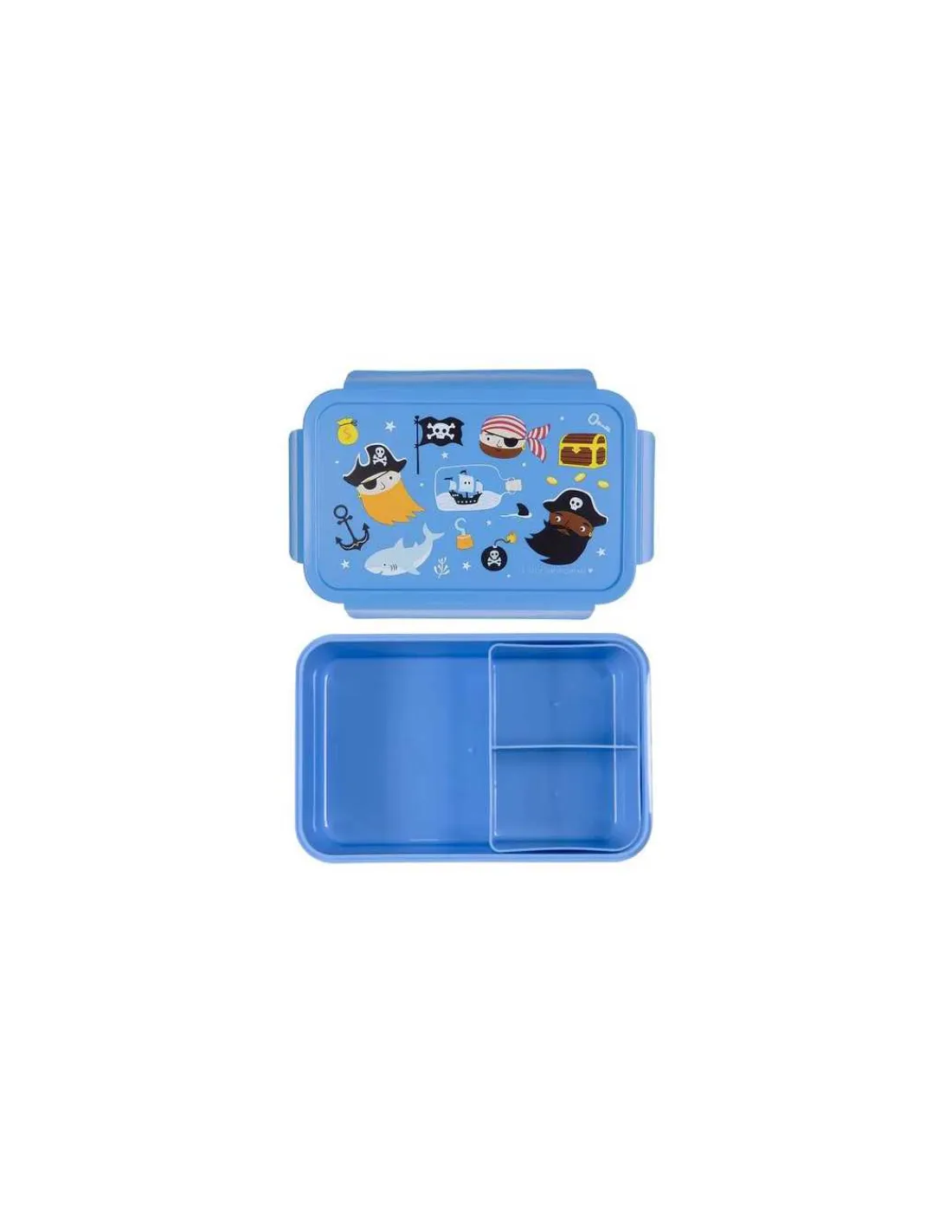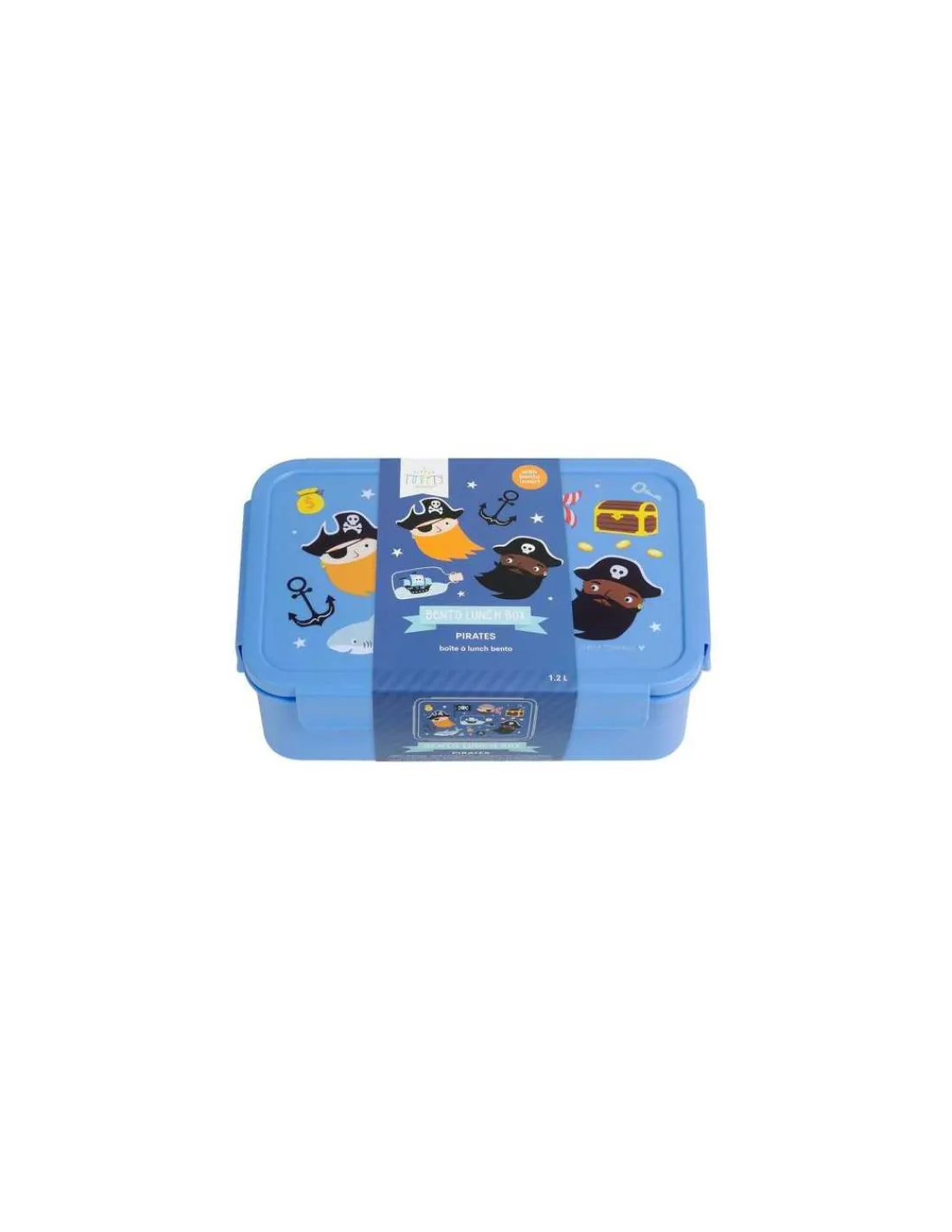Découvrez la boite à lunch bento Pirates de A Little Lovely Company, une boite à goûter bleue joliment illustrée avec des pirates pour partir à l’aventure mais sans oublier de manger.