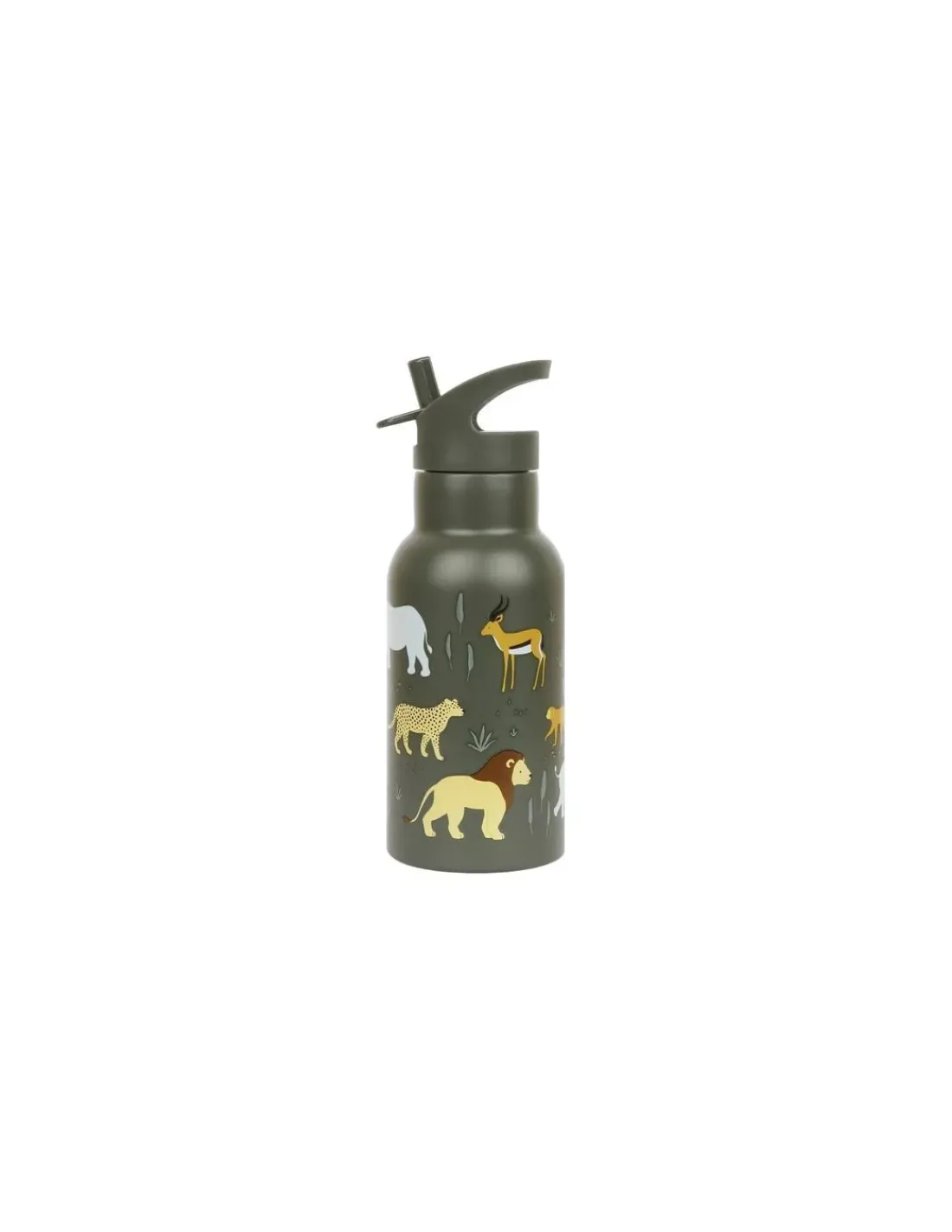 Une gourde très pratique, illustrée avec des animaux de la savane, à assortir avec la boite à lunch, les boites à goûter, le sac à dos isotherme et le petit sac à dos de la même collection.
