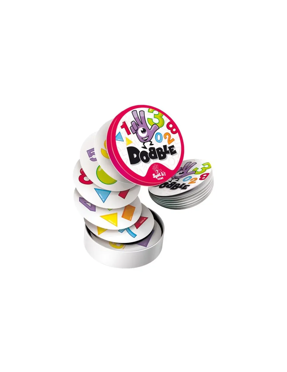 Découvrez le jeu Dobble 123, un jeu d’observation et de rapidité pour les enfants dès 3 ans sur les formes et les chiffres pour tester ses réflexes dans une ambiance de folie.