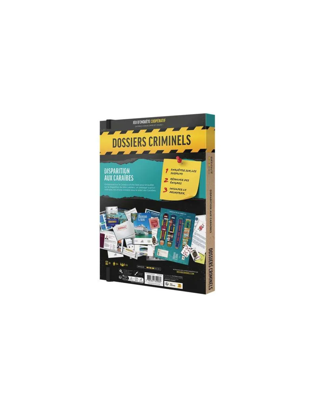 Découvrez Dossiers Criminels : Disparition aux Caraïbes de Platonia Games, un jeu d’enquête dans lequel vous devrez résoudre des énigmes pour inculper un meurtrier. Un jeu collaboratif pour jouer à partir de 14 ans, avec des mécaniques d’Escape game.