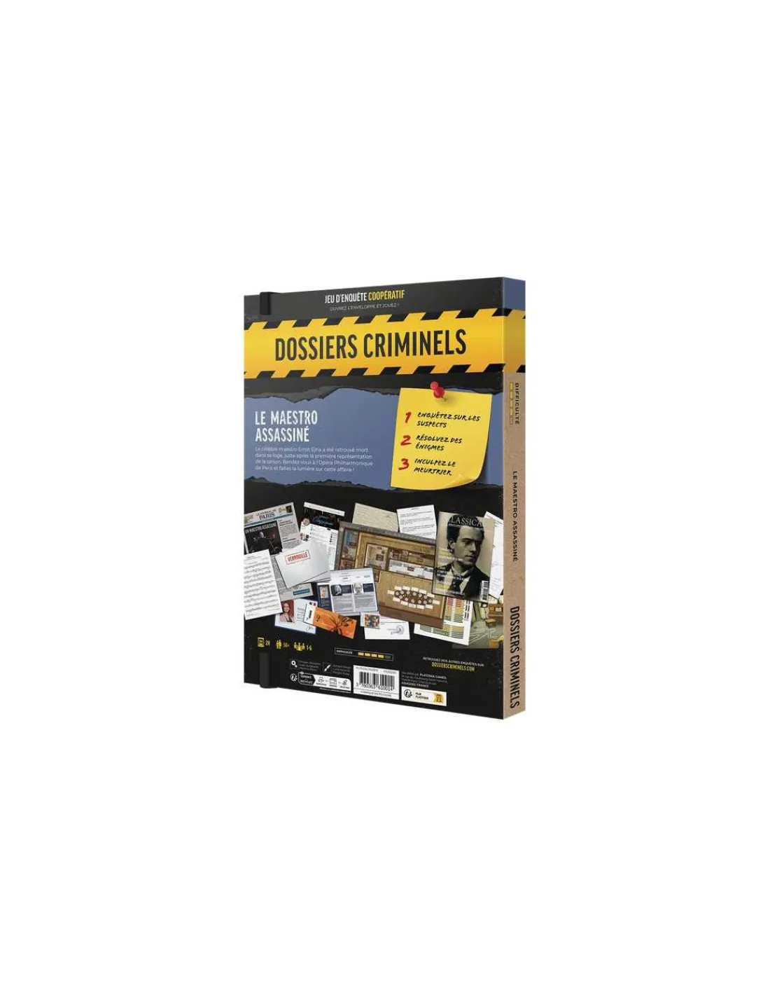 Découvrez Dossiers Criminels : Le Maestro Assassiné de Platonia Games, un jeu d’enquête dans lequel vous devrez résoudre des énigmes pour inculper un meurtrier. Un jeu collaboratif pour jouer à partir de 14 ans, avec des mécaniques d’Escape game.