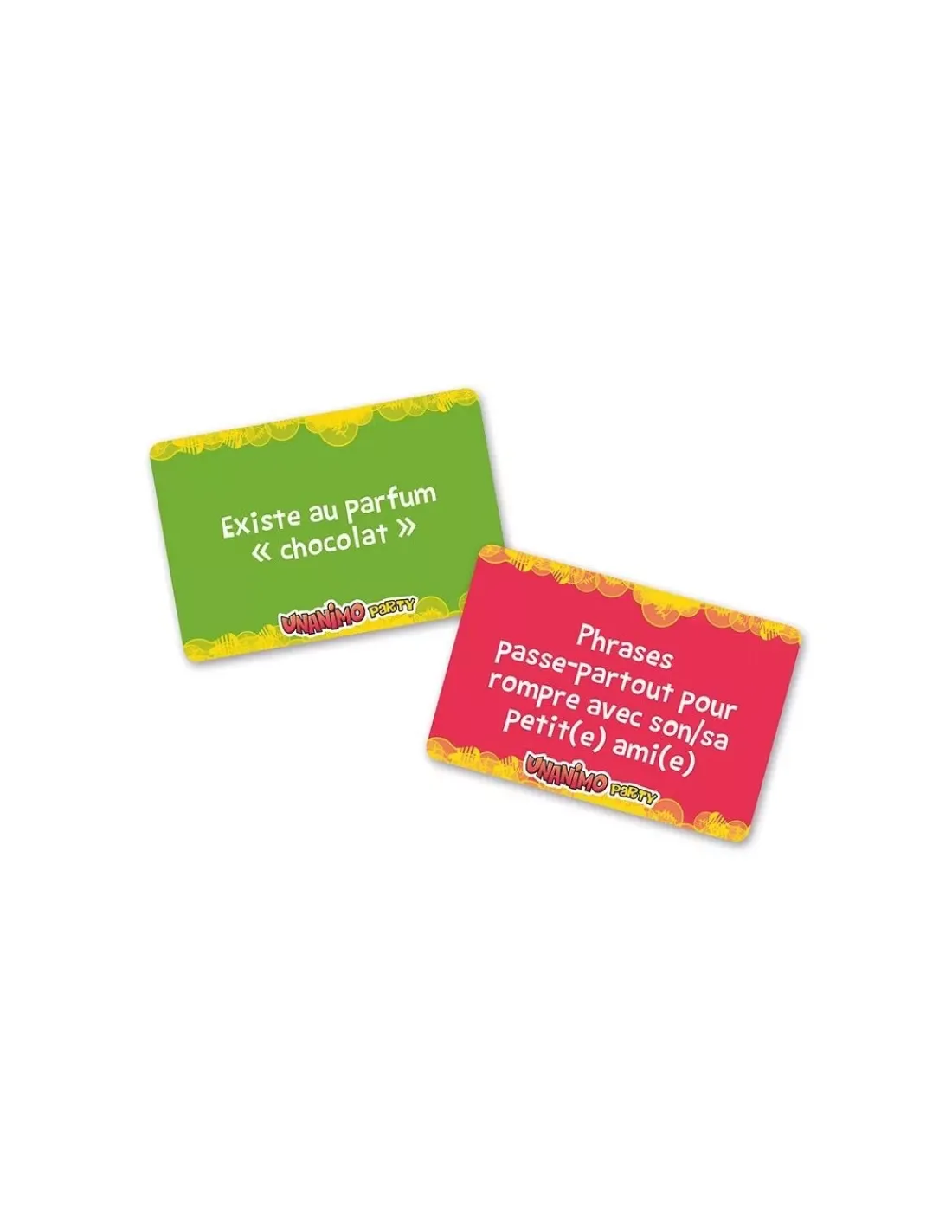 Découvrez le jeu Unanimo party, un jeu Cocktail games, un jeu d’ambiance de communication et de déduction pour jouer entre amis. Soyez unanimes… sur 6 mots!