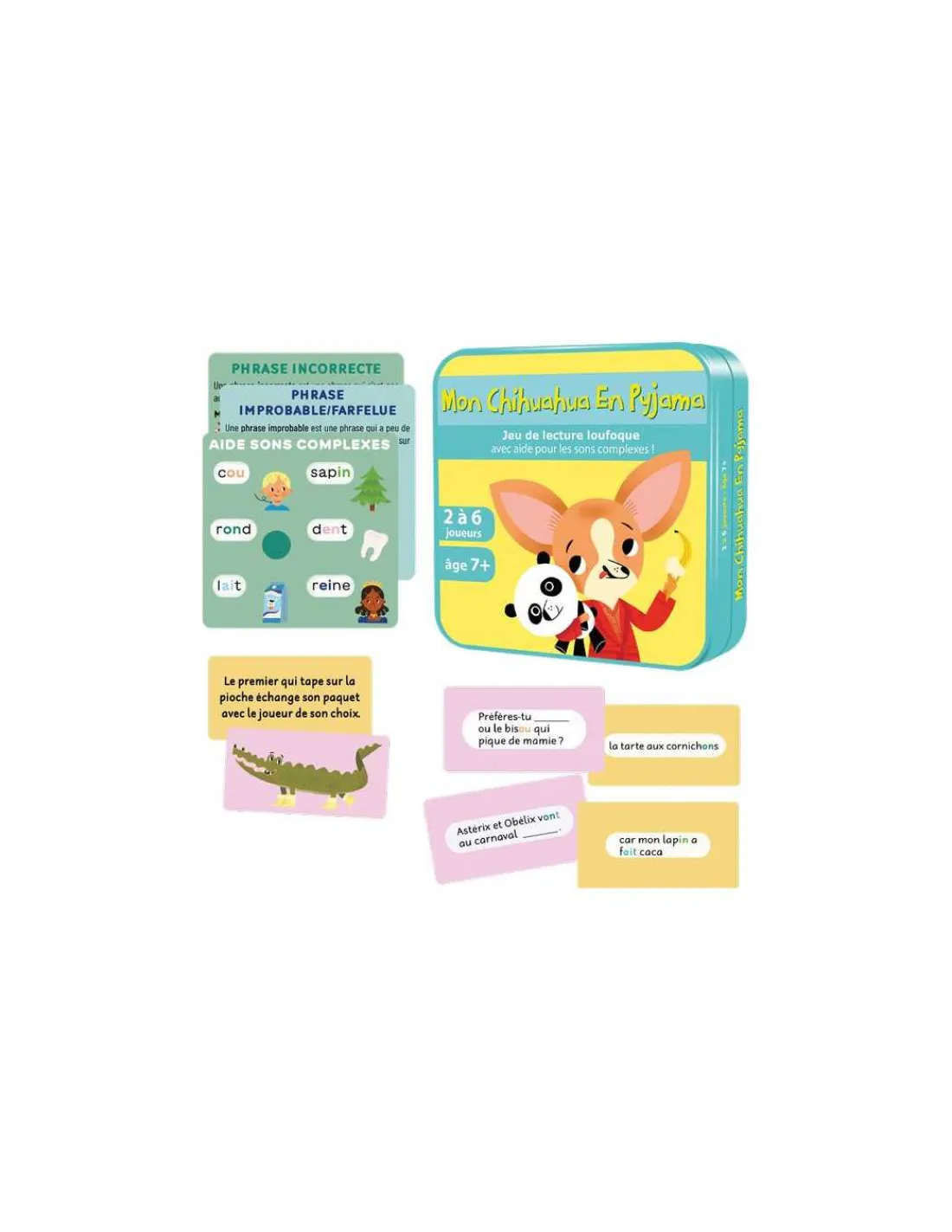 Découvrez le jeu Mon Chihuahua en Pyjama de l’éditeur Aritma, un jeu de cartes éducatif et ludique pour développer les compétences en lecture, dès le CE1, en favorisant la maîtrise des sons complexes.