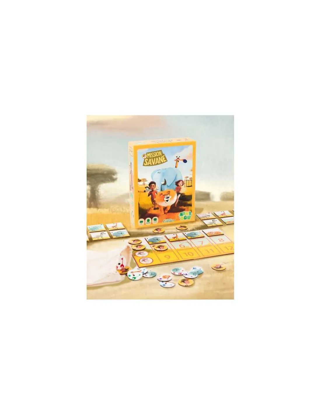 Découvrez le jeu Mission Savane de Kiwizou, un jeu coopératif pour jouer en famille avec les enfants dès 5 ans.