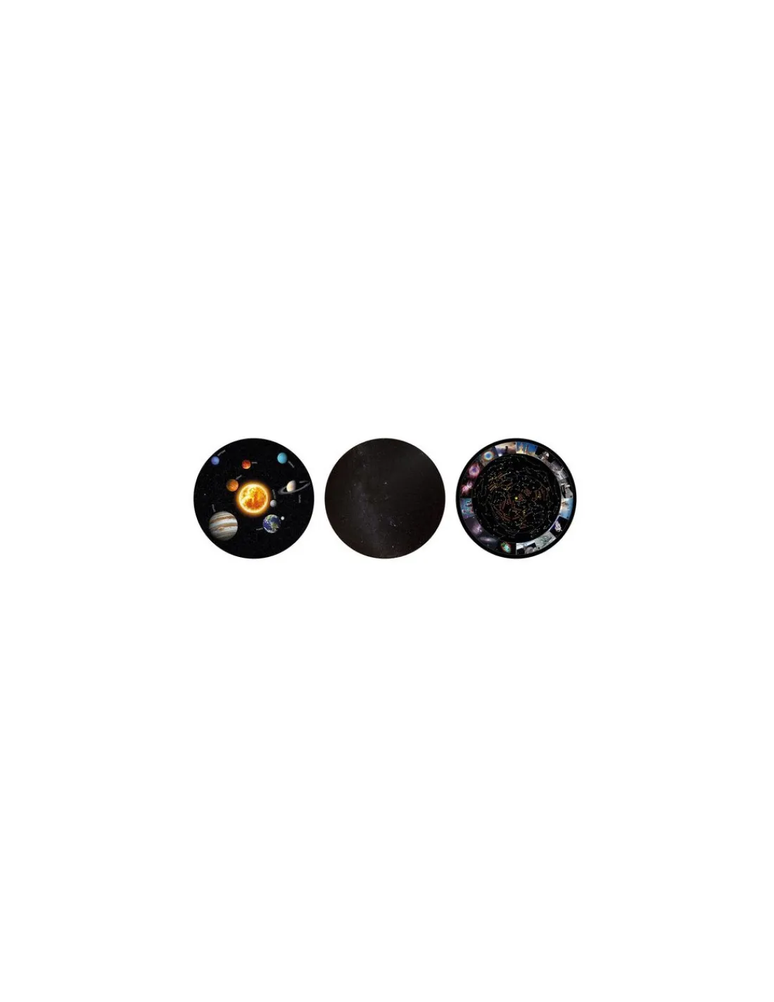 3 disques sont inclus avec le ciel étoilé, le système solaire et la carte des constellations et des nébuleuse. Une image qui tourne sur elle-même avec un timer de 30 minutes.