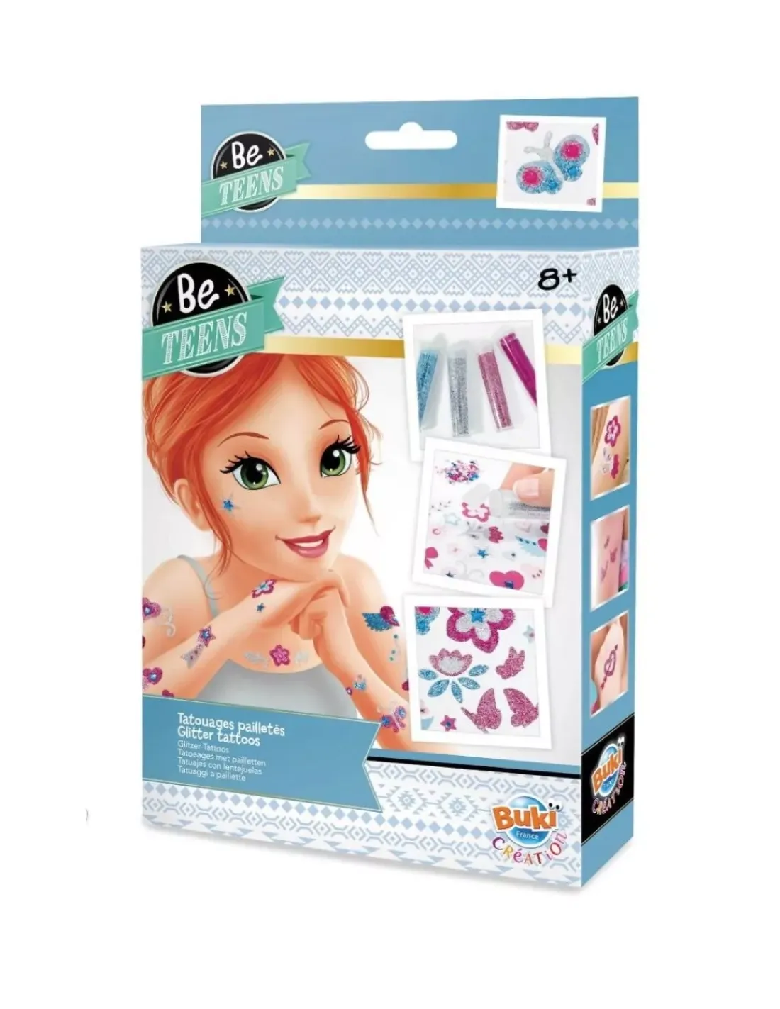 Découvrez les tatouages pailletés de Buki, un coffret créatif de maquillage pour les enfants à partir de 8 ans. Des tatouages qui brillent pour les filles!