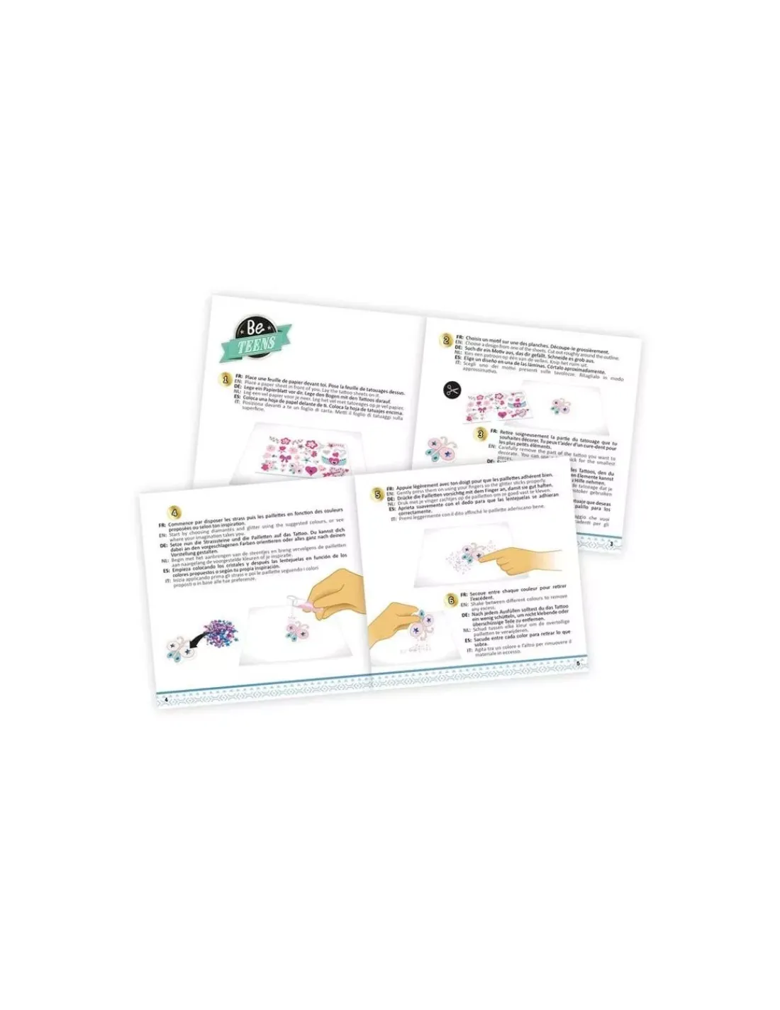Choisis ton motif, verse les paillettes de différentes couleurs, détache ton tatouage et colle-le sur ta peau pour un rendu étincelant.