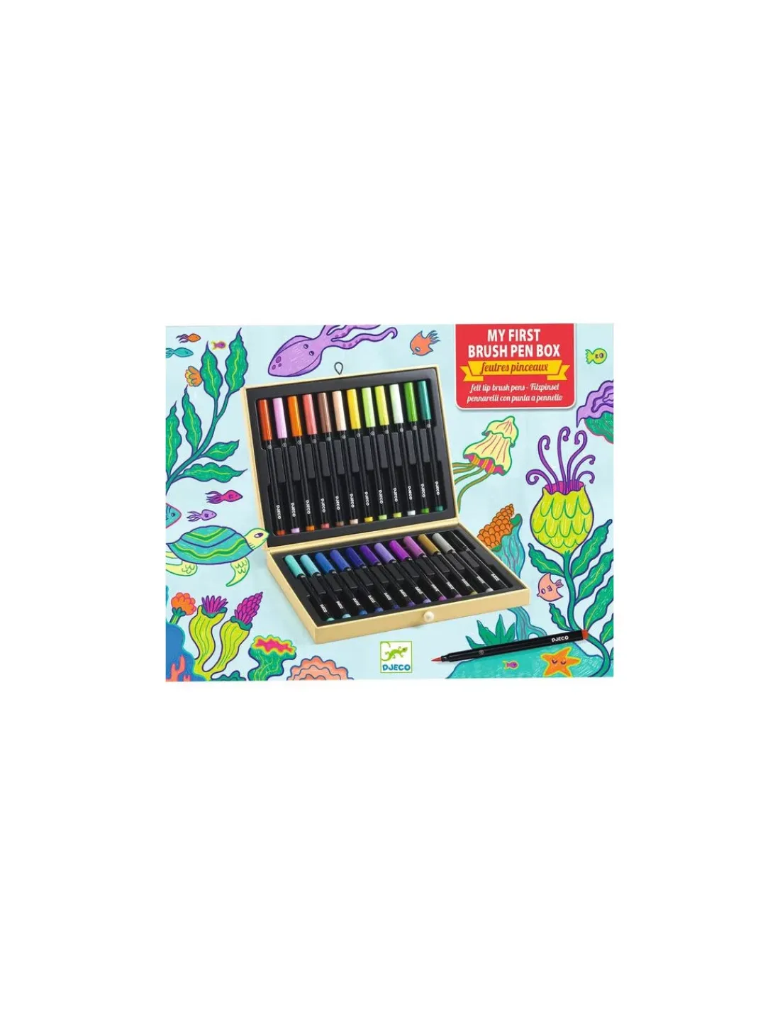 Découvrez la magnifique mallette de mes 1ers feutres pinceaux Djeco. Une valise regroupant 24 feutres pinceaux aux multitudes de couleurs pour tous les enfants à partir de 5 ans.