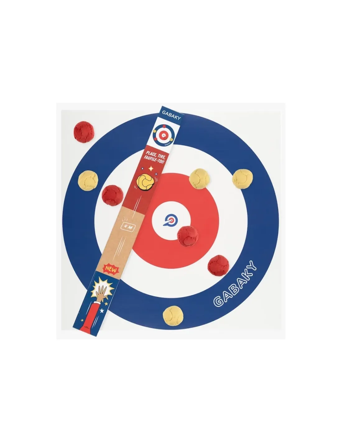 Découvrez le Gabaky, un jeu d’adresse et de lancer composé de balles molles et d’une cible, un jeu d’intérieur qui est un mélange de plusieurs disciplines : la pétanque, le palet breton et le curling.