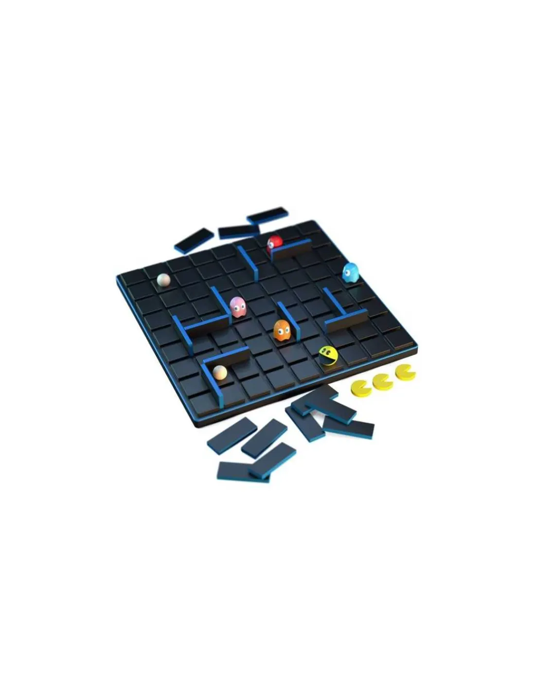 La boite de jeu contient 1 plateau de jeu de 81 cases, 4 pions « Fantôme », 1 pion « PAC-MAN », 20 barrières, 4 Super Pac-Gommes et 3 jetons vie supplémentaire (à utiliser avec la variante Pac-Man).