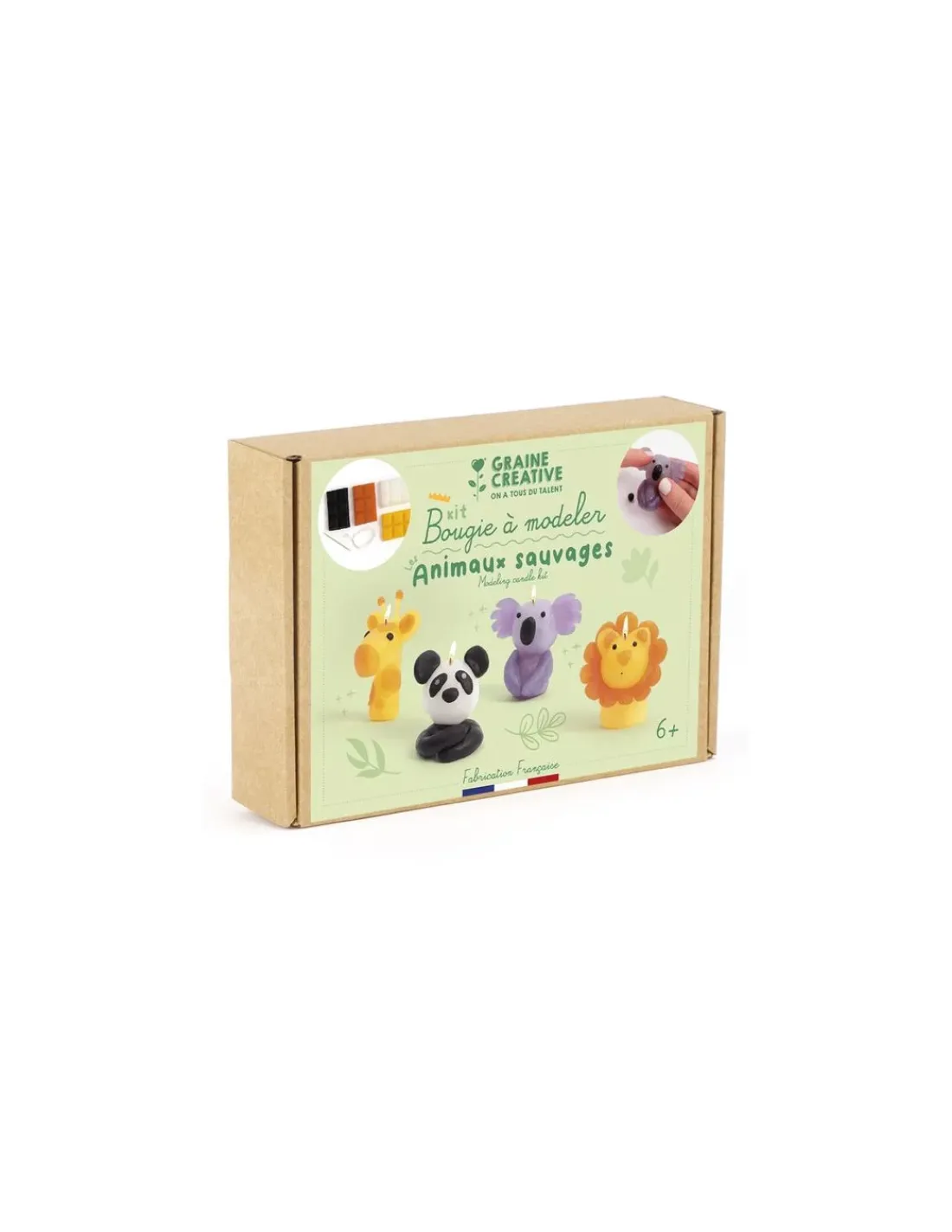 Découvrez le Kit bougies à modeler animaux sauvages de Graine créative, un coffret créatif à partir de 6 ans pour réaliser 4 magnifiques bougies sur le thème des animaux sauvages. Une activité manuelle fabriquée en France.