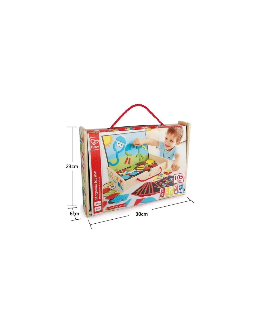Découvrez le coffret artistique magnétique de Hape, un jeu éducatif magnétique pour les enfants à partir de 3 ans avec des magnets. Choisissez parmi 91 formes magnétiques et placez-les sur le tableau représenté sur le couvercle intérieur, ou collez-les sur la face arrière vierge pour créer tout ce que vous voulez!