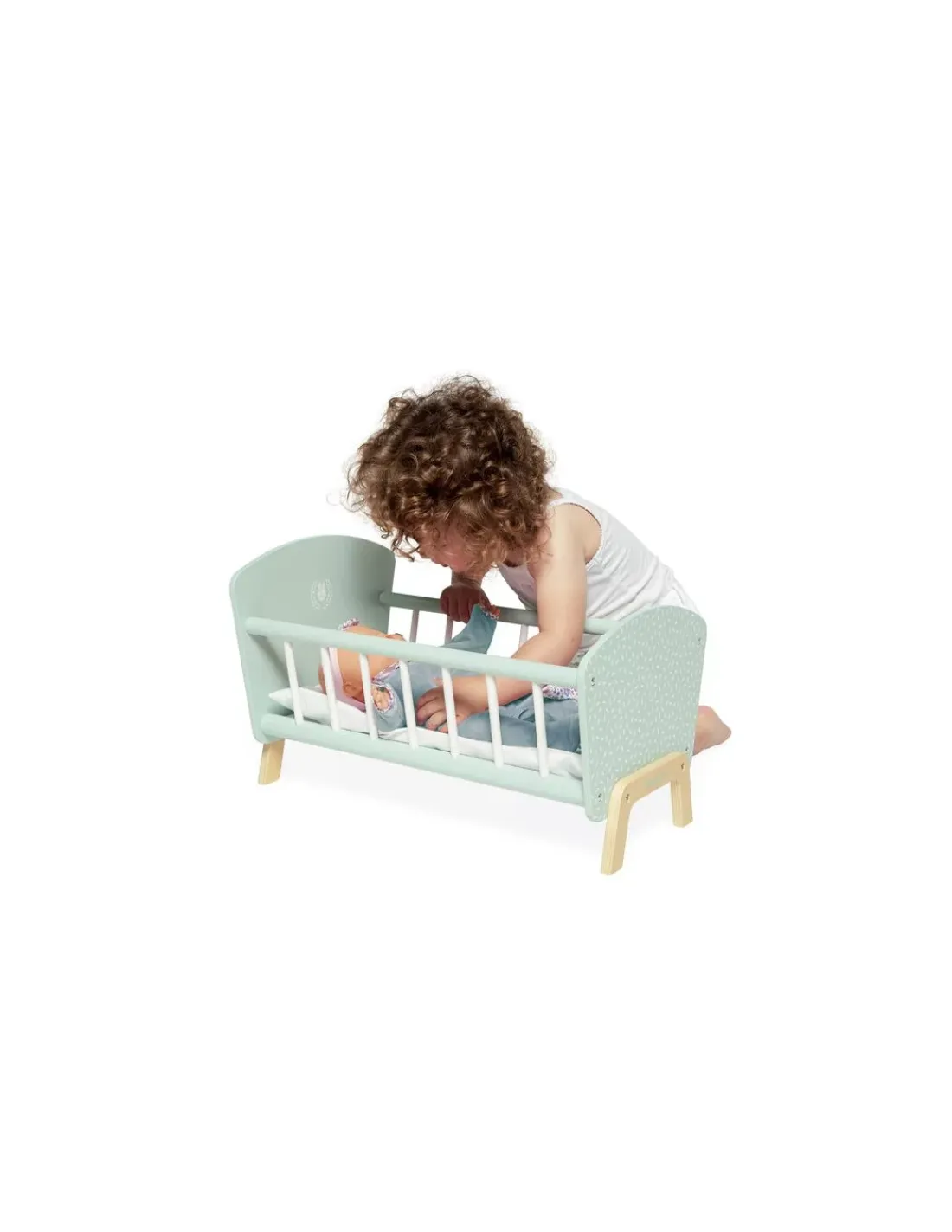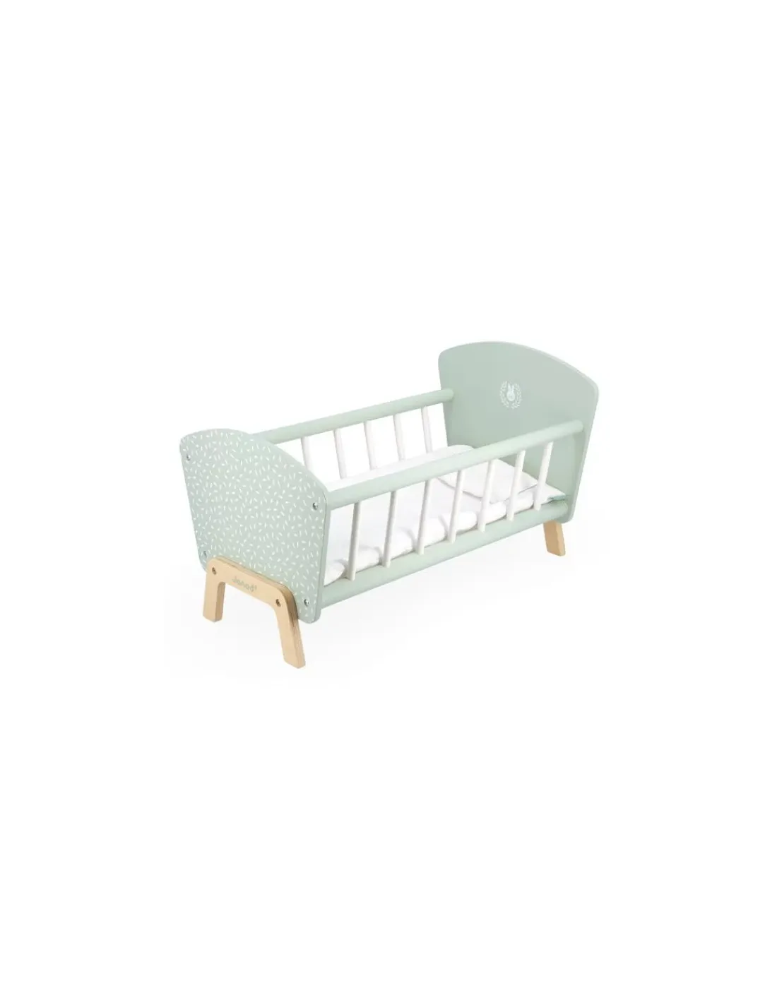 Découvrez le lit Zen de Janod, un meuble en bois vert et blanc pour s’occuper de ses poupées ou de ses peluches. Un joli lit en bois équipé d’un matelas, d’un oreiller et d’une couverture pour que les enfants de 3 à 6 ans puissent jouer à la poupée.