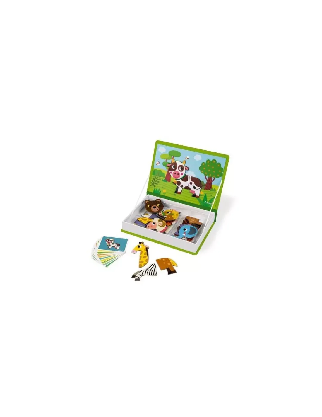 Présenté dans une boite livre à fermeture magnétique, ce jeu s’emporte partout pour s’occuper à tout moment. Composé de 30 magnets et de 10 cartes, une fois le livre ouvert, le but du jeu est de recomposer sur la scène l’animal indiqué sur la carte à l’aide des magnets. Votre enfant pourra également réaliser des animaux farfelus car les chaque pièce est interchangeable avec une autre.