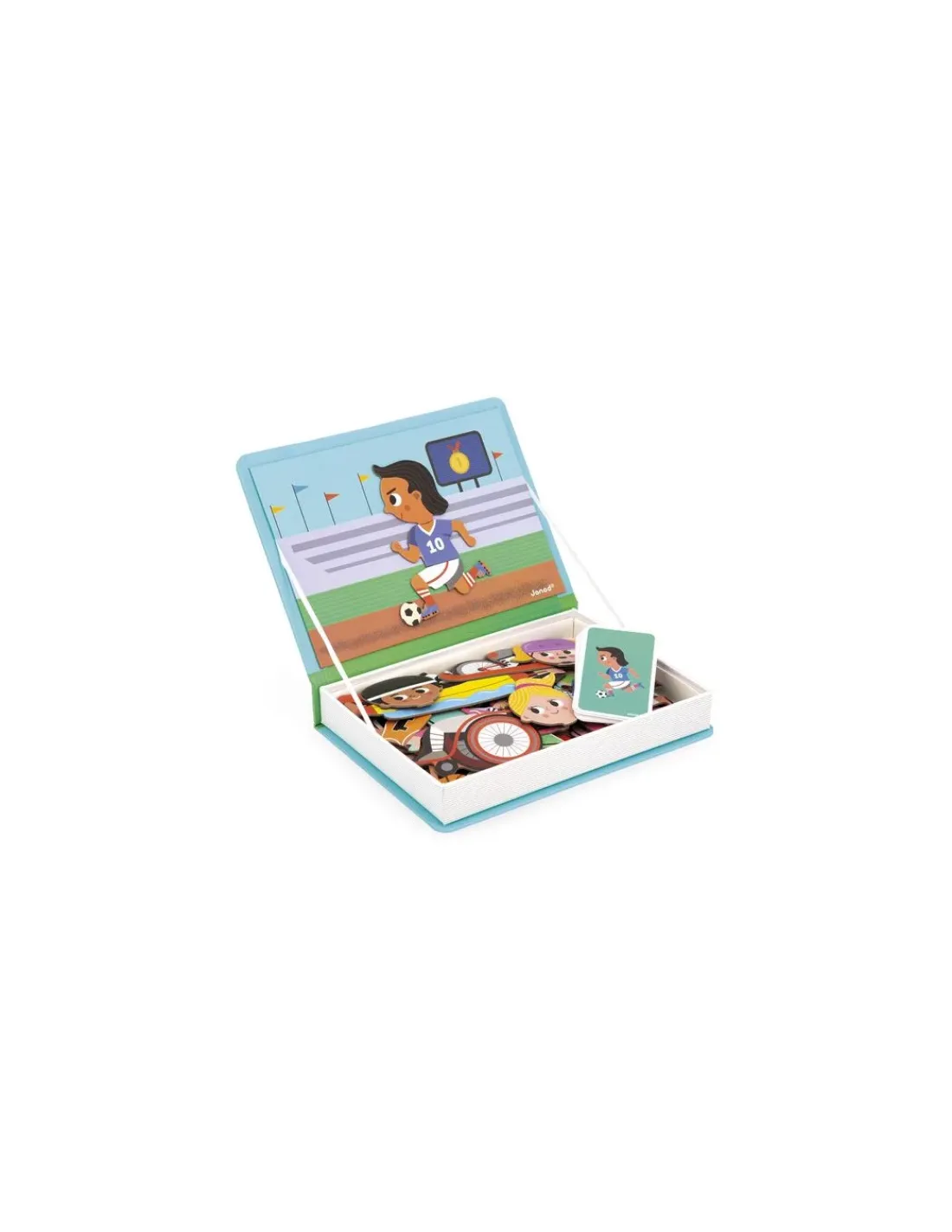 Découvrez le Magnetibook Sports de Janod, un jeu éducatif magnétique pour les enfants de 3 à 8 ans, qui vont reconstituer des sportifs avec des magnets.