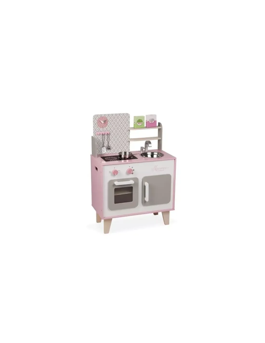 Découvrez la maxi cuisine Macaron de Janod, une cuisine toute en bois pour préparer de bons petits plats et devenir un vrai chef. Cette cuisine équipée comprend 5 accessoires pour cuisinier (une poêle, 2 cuillères et 2 boites d’aliments en carton) ainsi que du son et de la lumière.