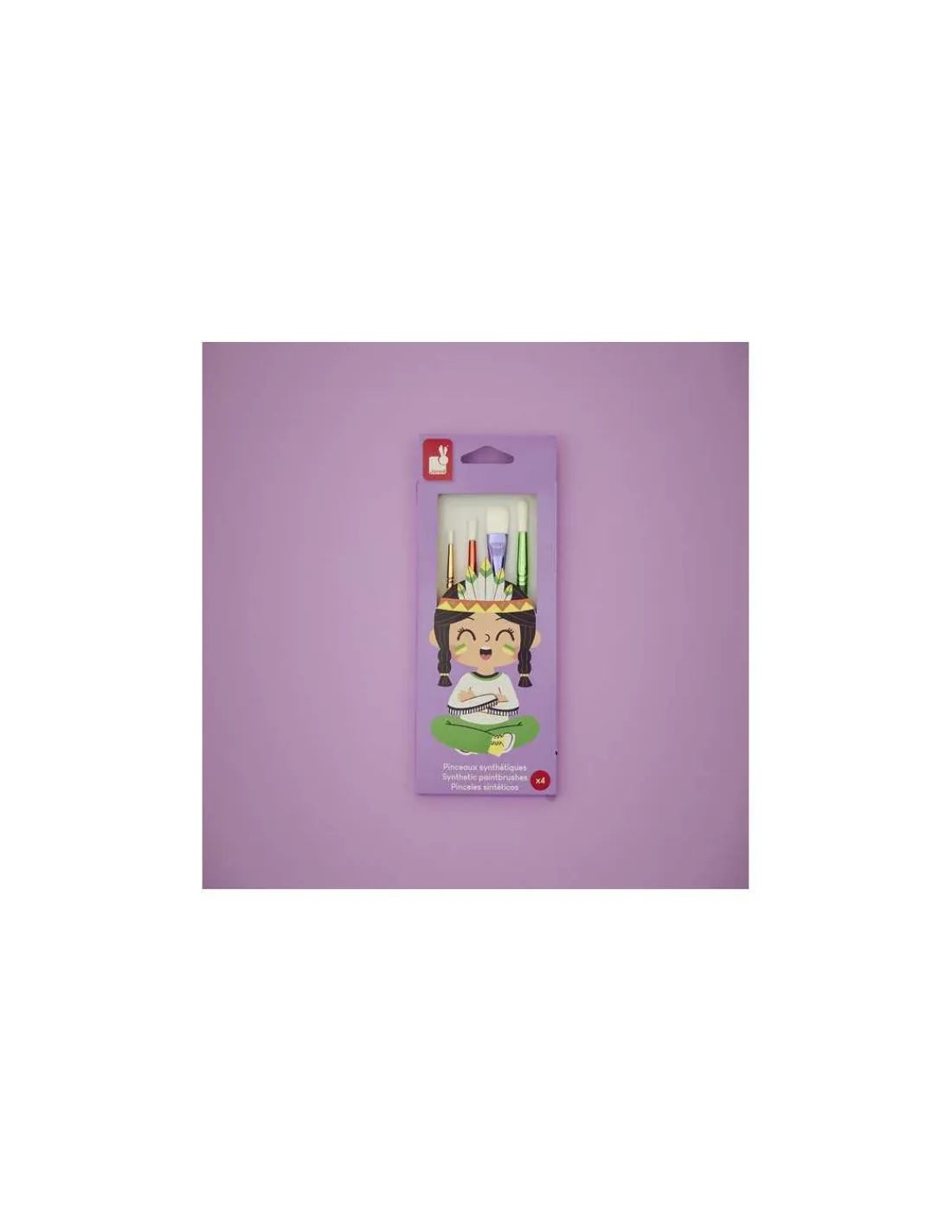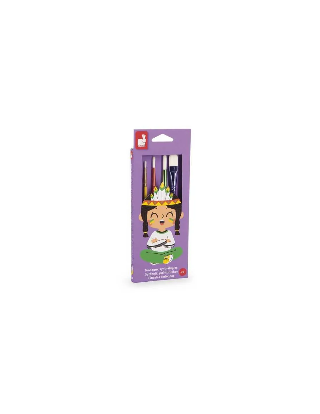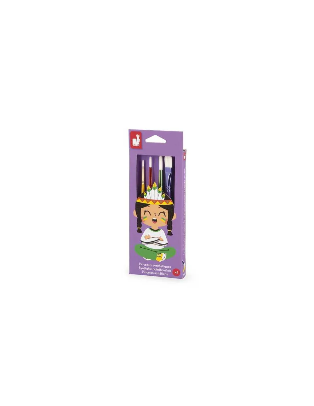 Découvrez la pochette de pinceaux synthétiques de Janod, un set comprenant de 4 pinceaux spécialement conçus pour les enfants dès 3 ans.